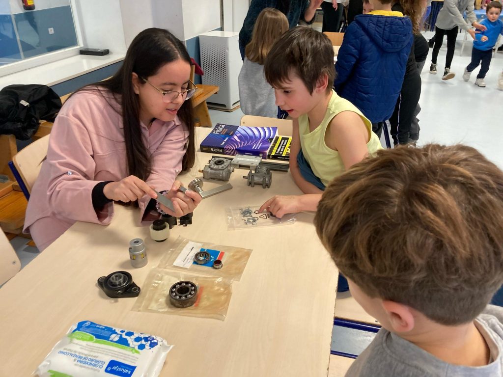 -Chaymae: estudiant d’enginyeria mecànica i ens va mostrar el funcionament de diferents mecanismes quotidians.