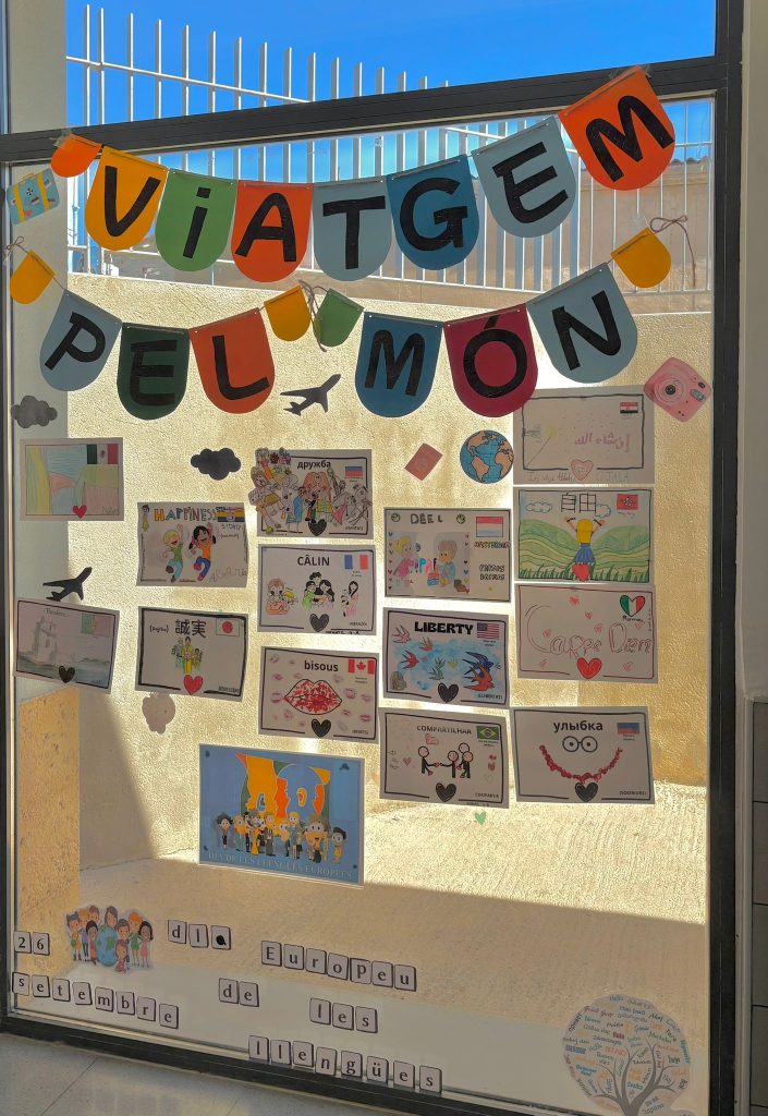 Per a commemorar el dia Europeu de les llengües, els xiquets i xiquetes del centre han realitzat aquest mural de PARAULES BONIQUES amb la llengua de la ciutat que representa cada classe.