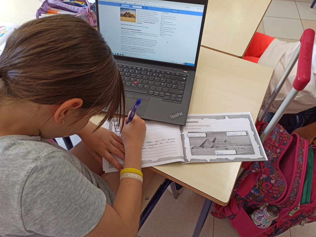 A l’aula ensenyem a l’alumnat a fer un ús correcte i responsable de l’ordinador. Aprenen habilitats digitals bàsiques com enviar un correu electrònic, adjuntar documents o imatges, i cercar informació útil i segura relacionada amb els continguts que estem treballant.