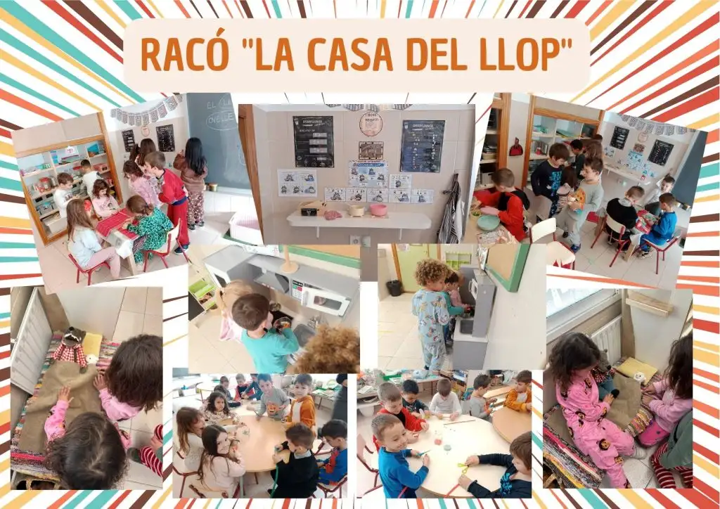 A través de la història del llop i l’ovelleta hem treballat el llenguatge, les emocions i els valors de cuidar, compartir i fer amistat. Hem fet seqüències del conte, dramatitzacions, titelles, receptes de sopa simbòlica i un racó de joc anomenat La casa del llop, on l’alumnat ha representat escenes i situacions de cura.