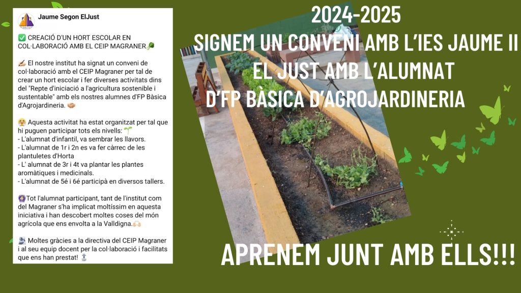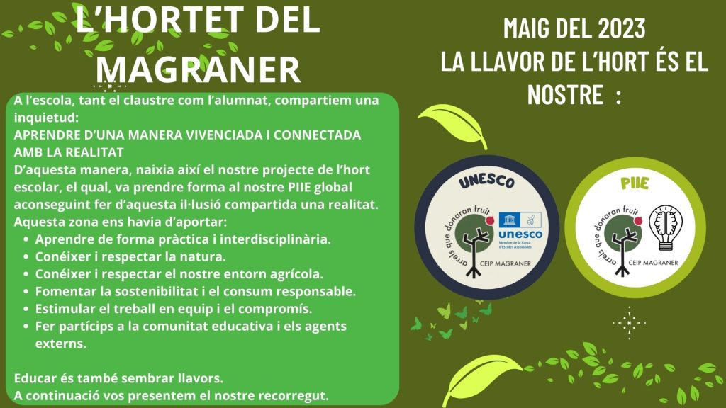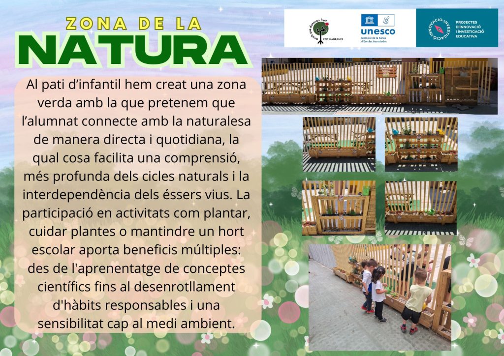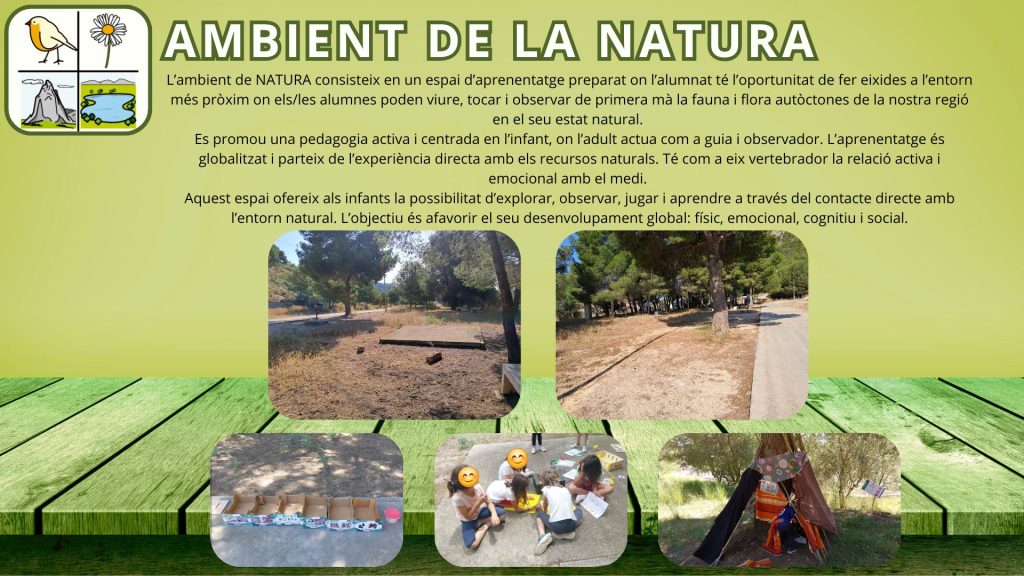 L’ambient de natura es du a terme a la muntanya, donada la situació previlegiada de la nostra escola, situada a la part alta del poble i molt propera a les nostres muntanyes.