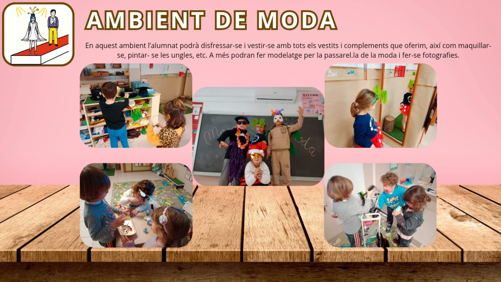 L’ambient de la moda es durà a terme a l’aula de 4 anys B. Els dies en què es desenvolupen els ambients, s’adapta el mobiliari i el material per garantir el correcte desenvolupament de l’activitat.