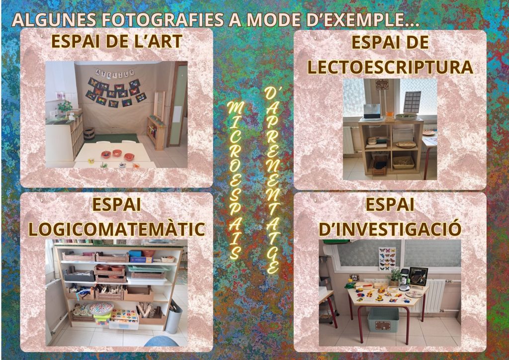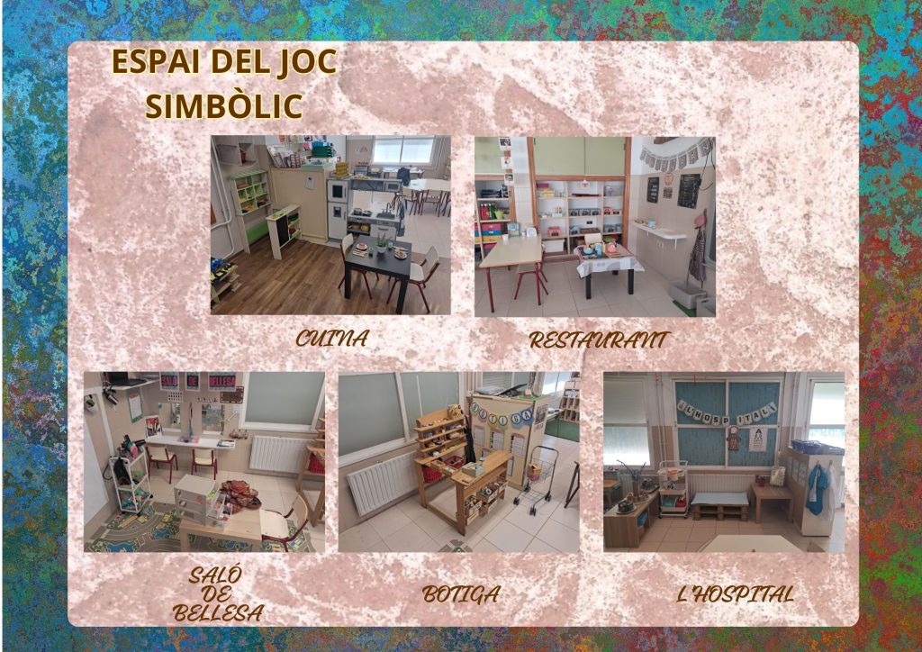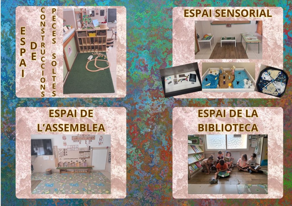 Com que la nostra escola és un centre no disposa de molts espais, per poder dur endavant els ambients d’educació infantil hem hagut de crear espais polivalents amb la finalitat de poder utilitzar els espais disponibles per a diferents usos. D’aquesta manera els ambients que hem dut a la pràctica s’han pensat desenvolupar als següents espais: