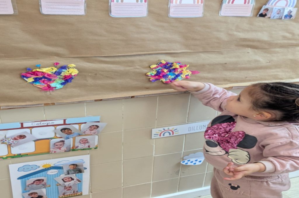 La clase de 2 anys ha treballat una activitat de motivació. Ademes, també han parlat dels colors que hi ha a la primavera. I després, els han pegat en unes flors i han fet la seva garlanda de primavera.