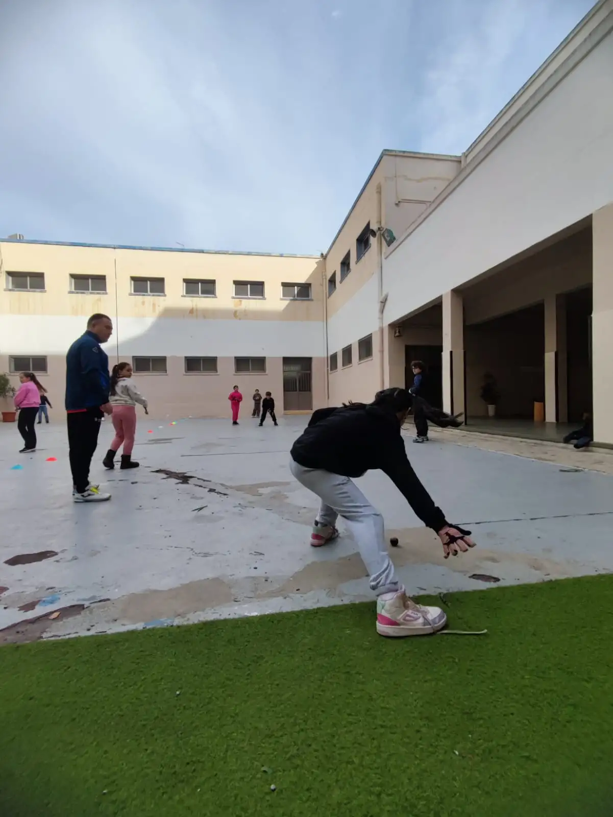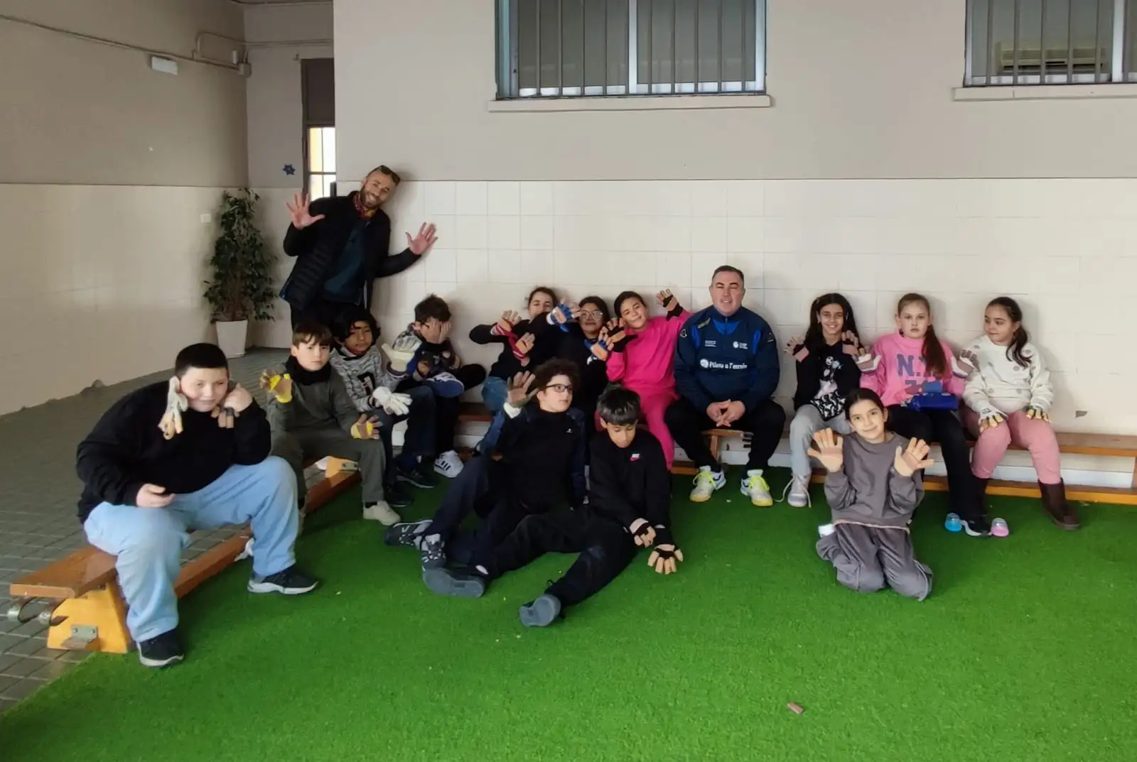 A continuació, es va realitzar la part pràctica, on els xiquets i xiquetes de quart van participar activament en diferents jocs i exercicis adaptats. Guiats pel pilotari, van aprendre les tècniques bàsiques del colpeig i van gaudir d’una experiència esportiva molt motivadora i enriquidora.