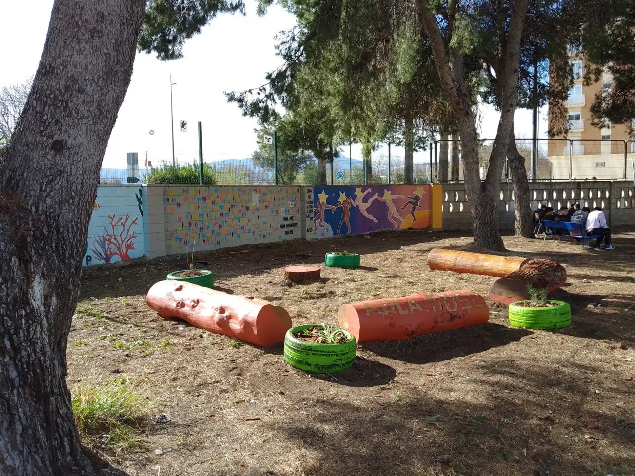 A partir del árbol que se quemó en el patio del centro hace dos veranos, se ha desarrollado una actividad educativa orientada a la transformación del patio en un espacio más verde, amable y funcional, con zonas de sombra y convivencia.