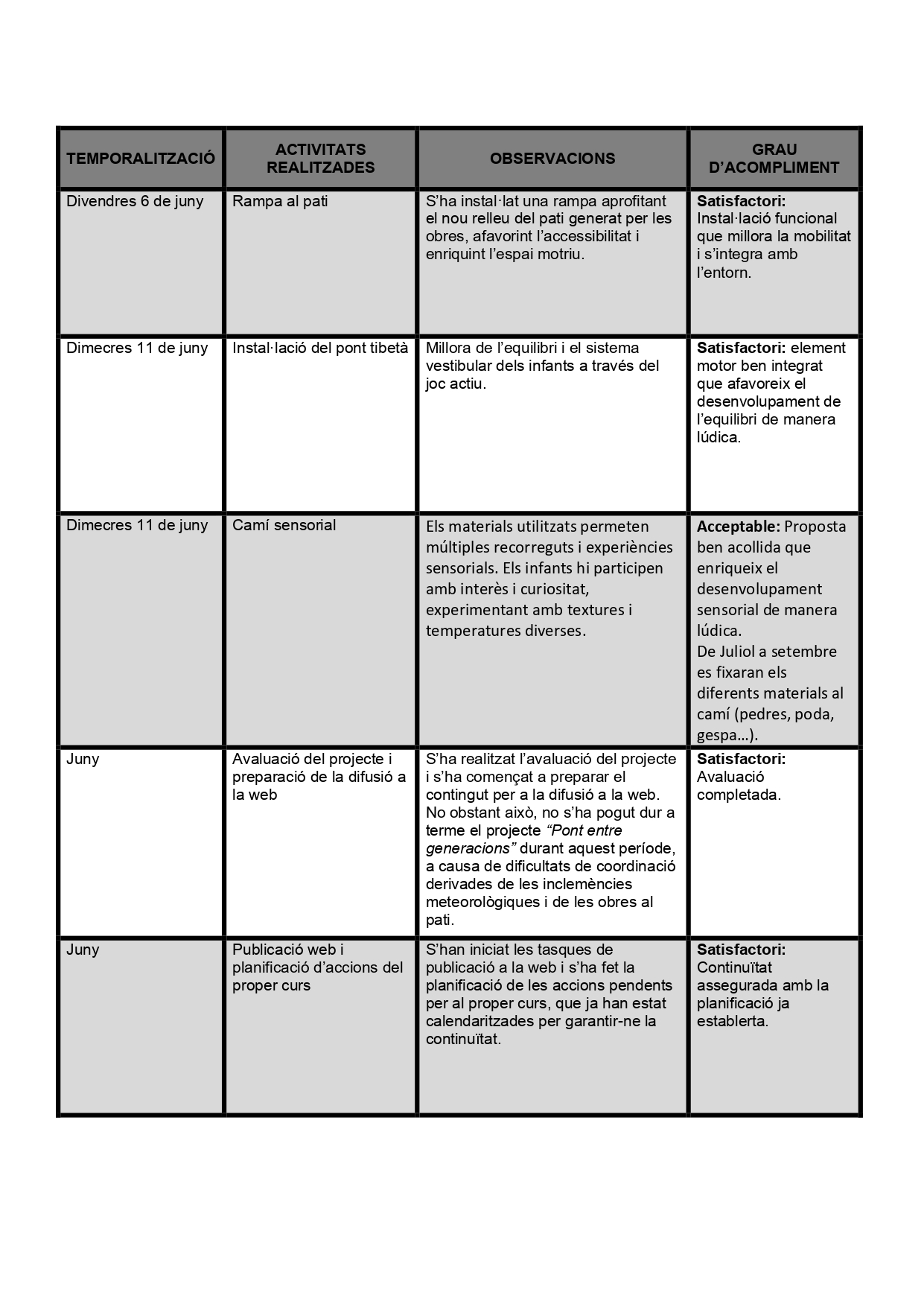 La zona creada no només té una intencionalitat lúdica, sinó també educativa: potencia la consciència corporal, afina la motricitat, afavoreix l’equilibri i estimula les funcions cognitives bàsiques com la percepció, l’atenció i la memòria. Al mateix temps, convida a la calma, a l’expressió emocional i al benestar, tot permetent que cada xiquet i xiqueta s’aprope al camí al seu ritme, des del respecte i la llibertat de moviment.