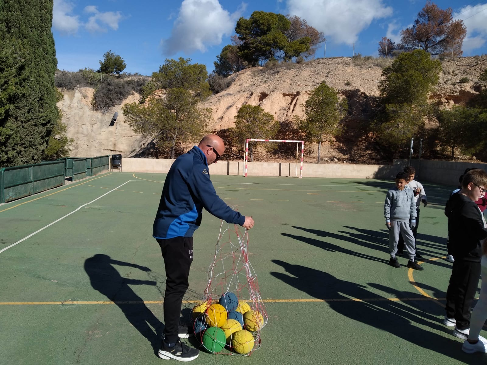 Hoy hemos tenido el privilegio de contar en nuestro cole con la presencia de Álvaro Francés, jugador profesional de pilota valenciana, y de José, entrenador también de pilota valenciana, dentro del programa «Pilota a l’escola». Nos han explicado todo lo relacionado con su deporte y nosotros hemos entrevistado a Álvaro haciendo un montón de preguntas sobre su vida, deporte, aficiones, estudios… Todos lo hemos pasado genial. Como colofón final hemos bajado al patio a realizar una sesión práctica de pilota valenciana.