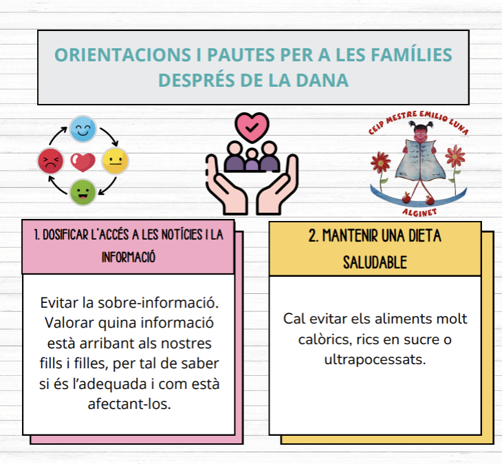 ORIENTACIONS A LES FAMILIES DESPRÉS DE LA DANA