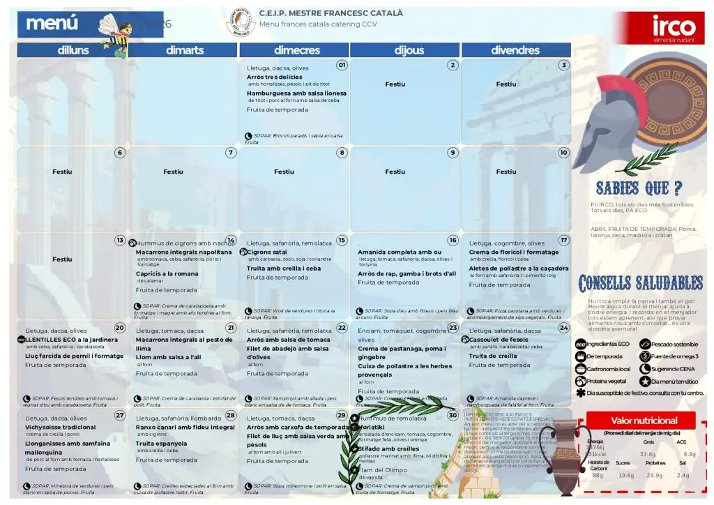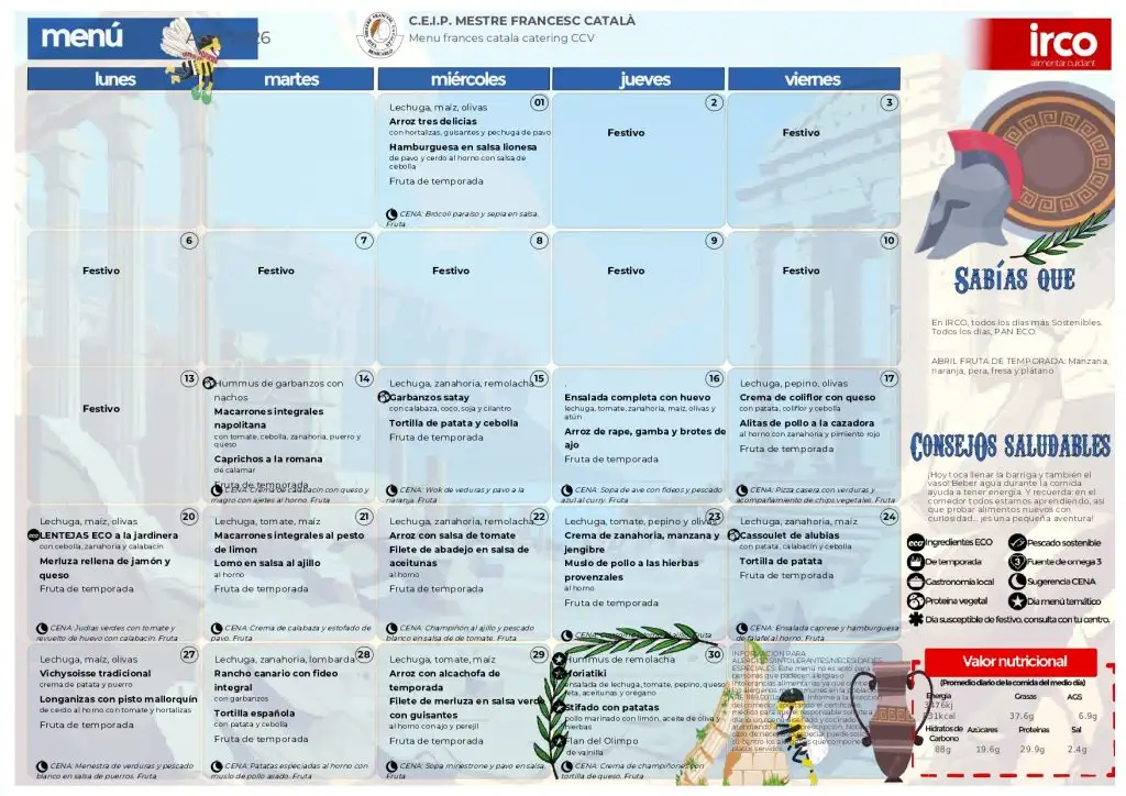 Menú mensual