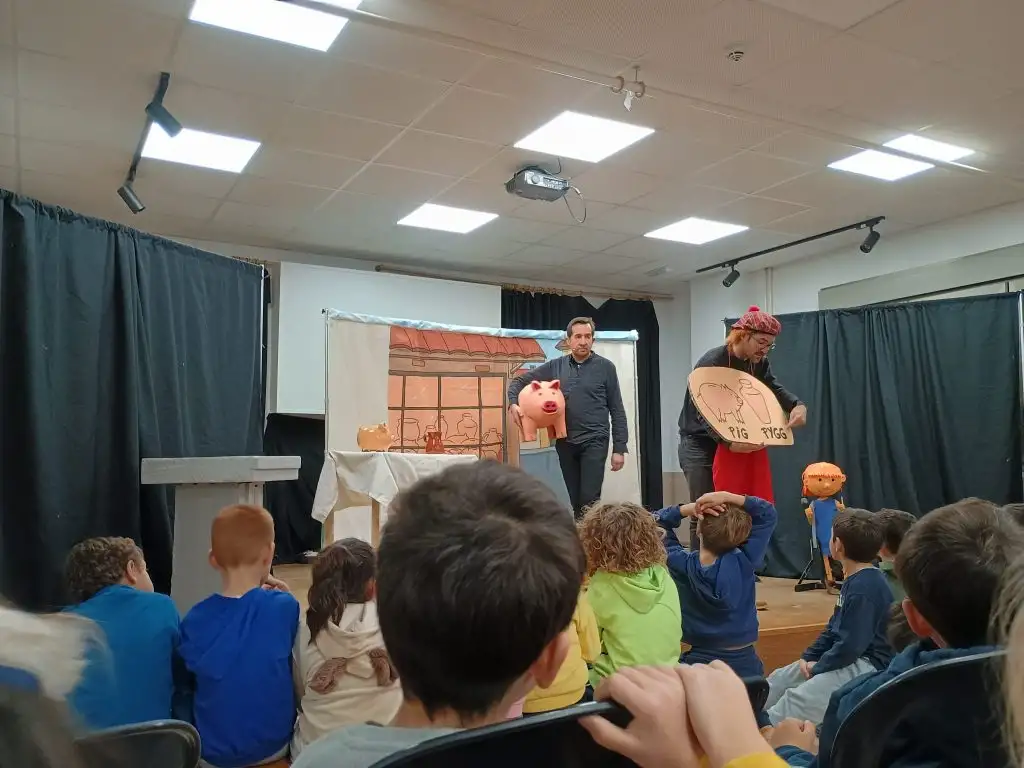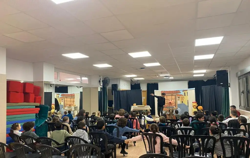 Tot l’alumnat de 1r, 2n i 3r hem gaudit d’una bona estona de contacontes de la mà de Jordi i Mario, de DEBATABAT. Resulta molt beneficiós tenir des de ben menudets i menudetes nocions d’educació financera, i gràcies a Caixa Ontinyent hem tingut l’oportunitat d’aprendre de forma molt divertida paraules com ‘estalviar, banc i vidriola’ amb els personatges Dino, Calista la periodista, Porqui i Serafí l’explorador.