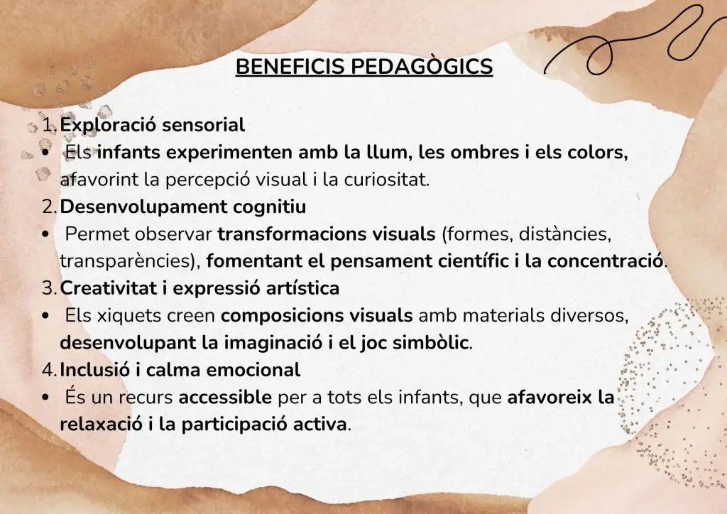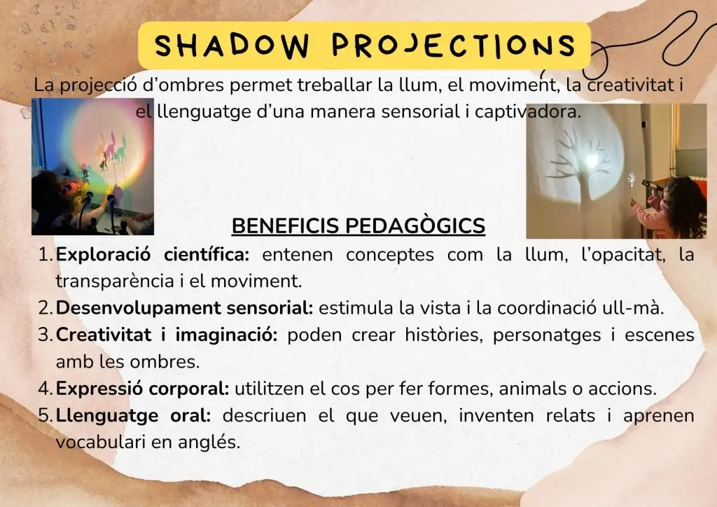 Amb aquestes activitats no només desperten la curiositat i la creativitat, sinó que també afavoreixen la percepció visual, l’atenció, el pensament científic i el llenguatge. Els infants exploren lliurement, fan hipòtesis, comparteixen descobriments i gaudeixen de l’art i la ciència alhora, i tot açò utilitzant l’anglés com a llengua vehicular.