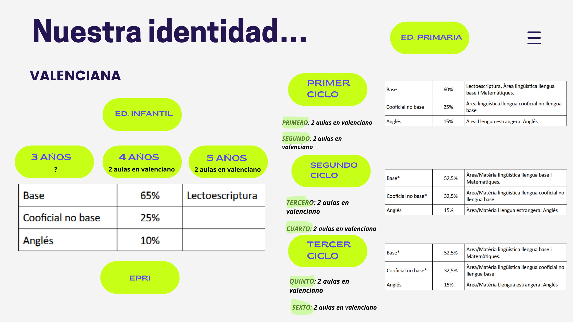 - LLENGUA: La llengua vehicular és el valencià en tots el grups i nivells educatius.