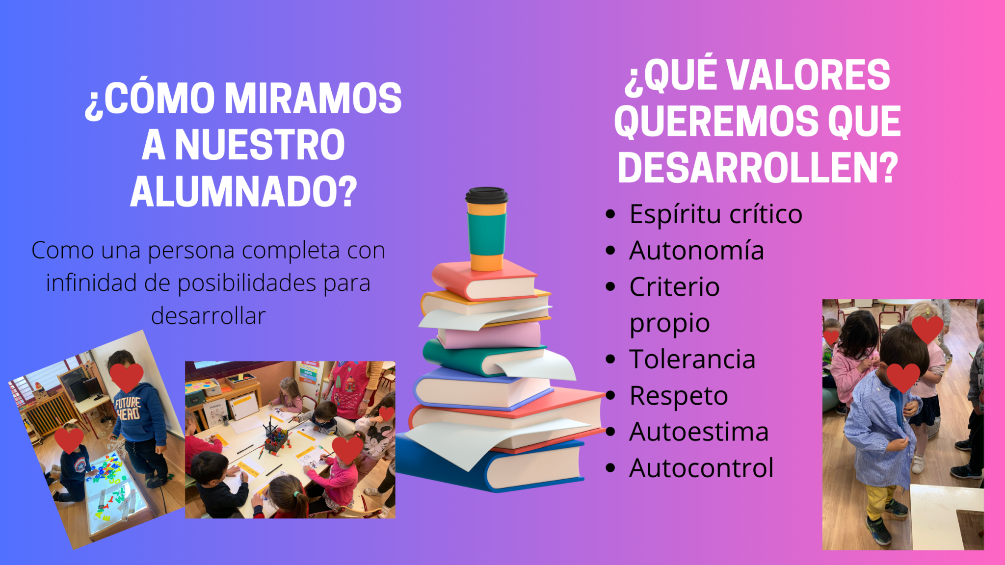- EDUCACIÓN EN VALORES: Educamos en el respeto a la diversidad y la naturaleza, coeducación, democracia, igualdad y solidaridad.