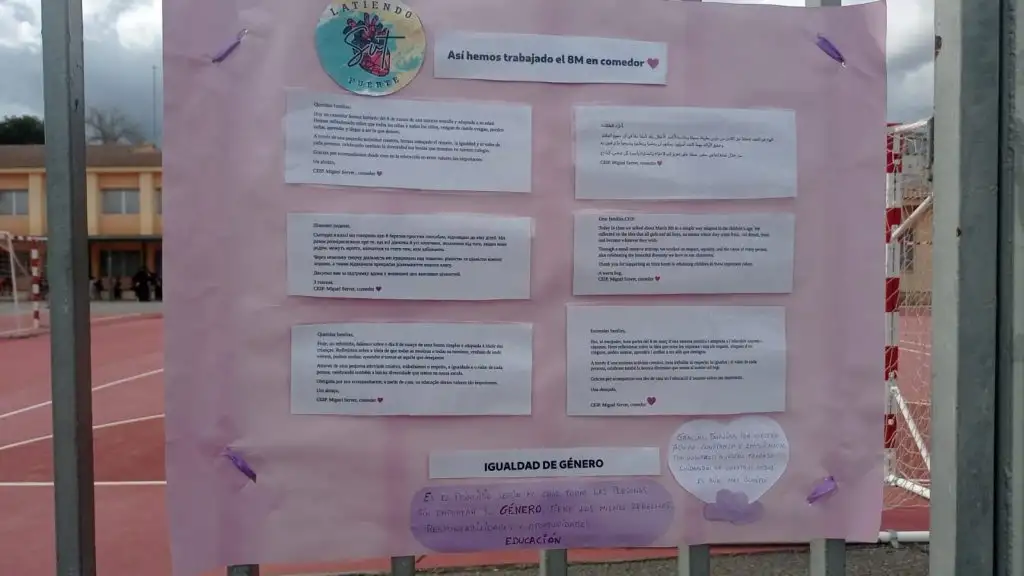 Con motivo del 8 de marzo, Día Internacional de la Mujer, en el comedor escolar hemos realizado diferentes actividades para trabajar la igualdad. El alumnado ha reflexionado sobre el significado del color morado y el origen de esta conmemoración, además de elaborar murales y fichas sobre conceptos como machismo, hembrismo e igualdad de género.