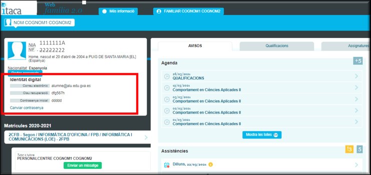 - La consulta de la identidad digital la puede hacer la familia y hay que acceder a través de Web Familia 2.0