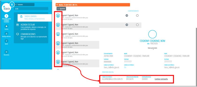 - El profesorado puede consultar las Identidades digitales de su alumnado desde el módulo docente de Itaca (MD2)