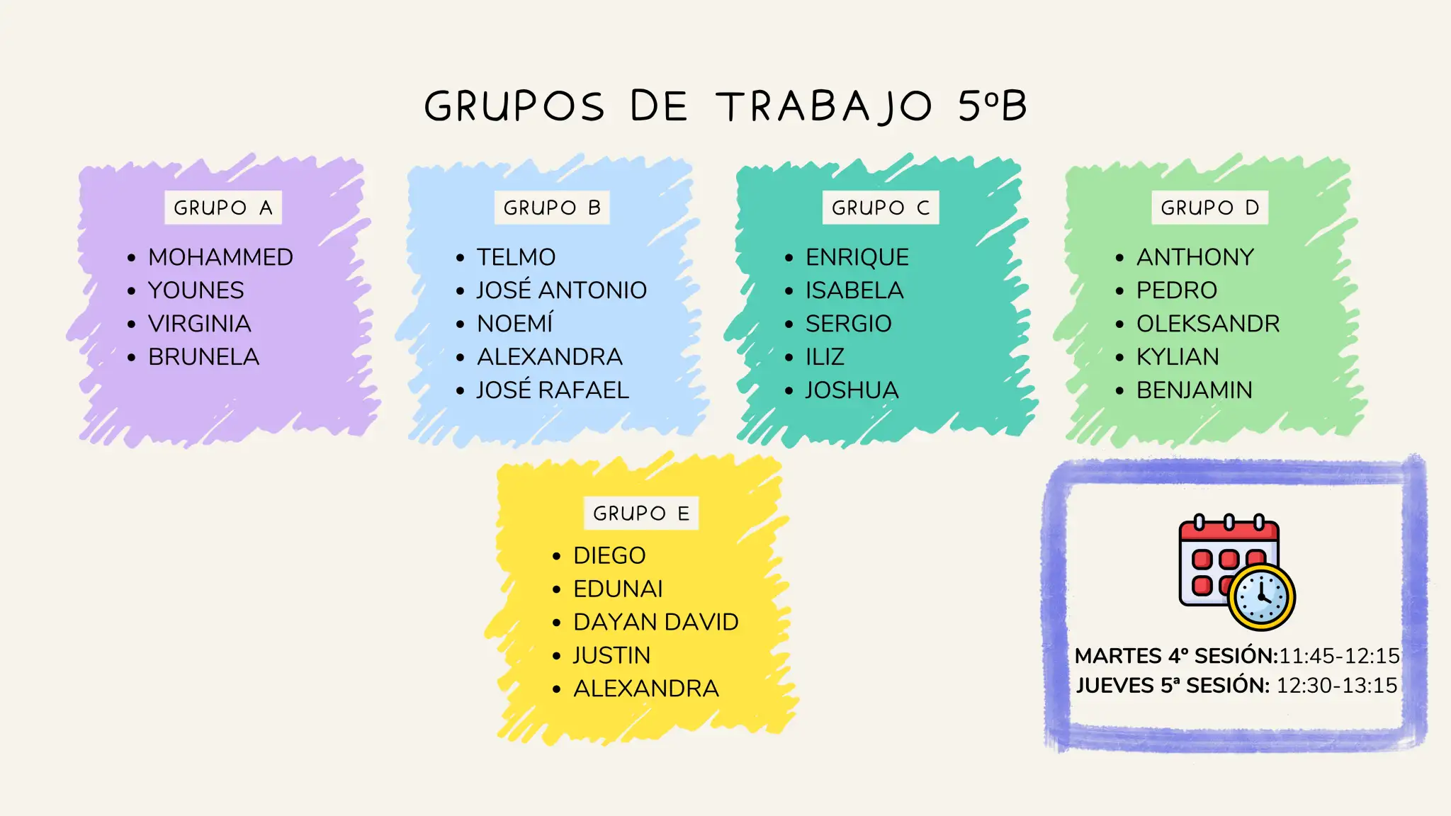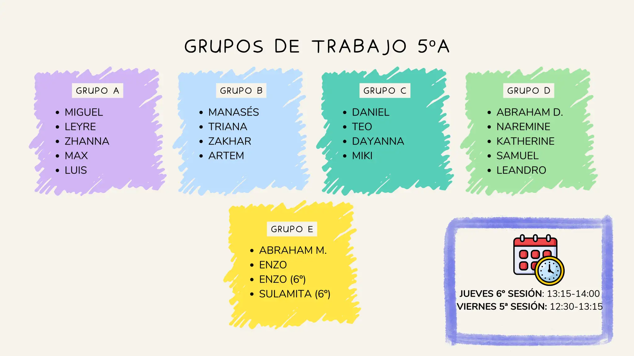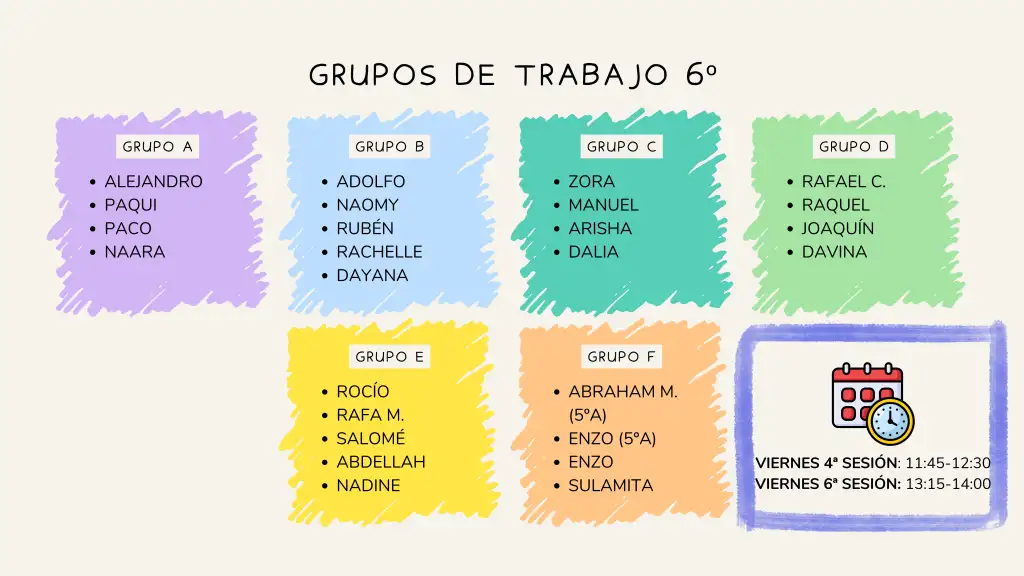 ANOTACIÓN: es posible que algún/a alumno/a no aparezca en la lista con motivo de no haber cumplido los requisitos de asistencia continuada al centro y/o normas de conducta acordes a la convivencia del centro. Este alumnado es sujeto de reincorporarse al proyecto siempre que cumpla con lo anterior de manera sostenida para asegurar el correcto funcionamiento del mismo. Del mismo modo, el alumnado es susceptible en todo momento de ser suspendido del proyecto si no asiste a clase regularmente y/o es contrario a las normas de convivencia del centro.