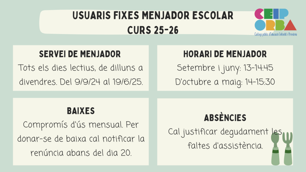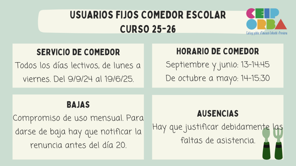 Inscripció al servei de menjador per a USUARIS FIXES per al curs 25-26 / Inscripción en el servicio de comedor para USUARIOS FIJOS para el curso 25-26