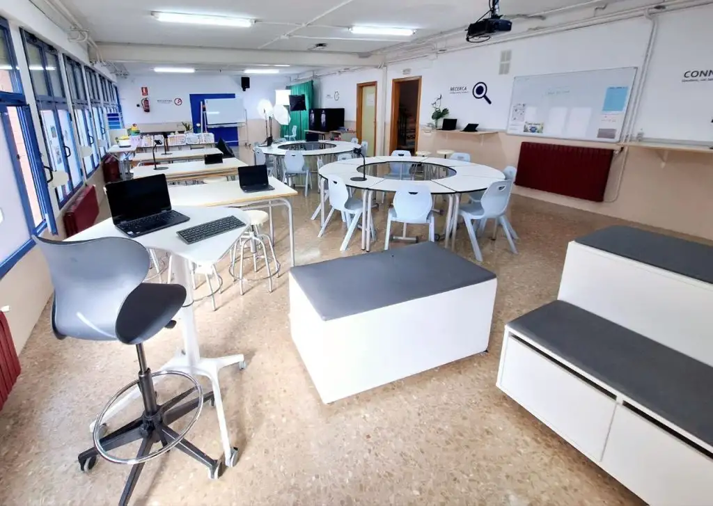 Este espacio está organizado en diferentes zonas de aprendizaje —reflexiona, investigación, conecta, crea, comparte y expone— que permiten adaptar la enseñanza en las necesidades del alumnado y a los diferentes momentos del proceso educativo. De este modo, se fomenta la autonomía, la motivación y la implicación activa del alumnado en su propio aprendizaje.