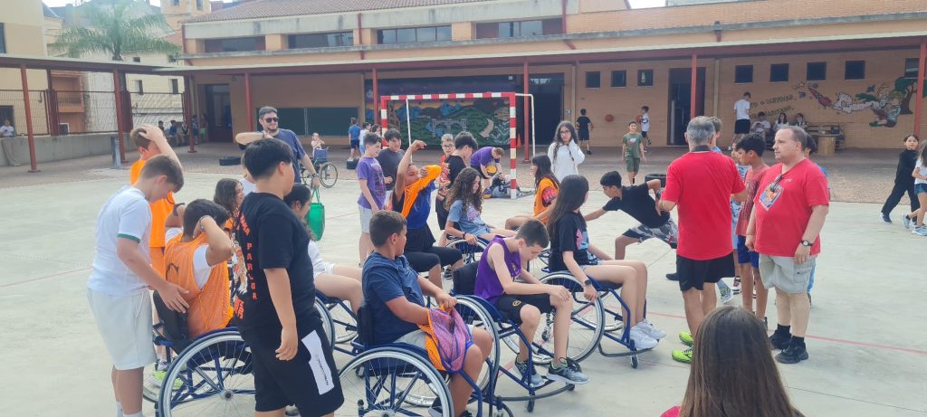 El nostre alumnat de 6é de primària va poder viure en primera persona, gràcies a l’alumnat i professorat d’ASPROMIVISE, d’una sessió pràctica de bàsquet en cadira de rodes.