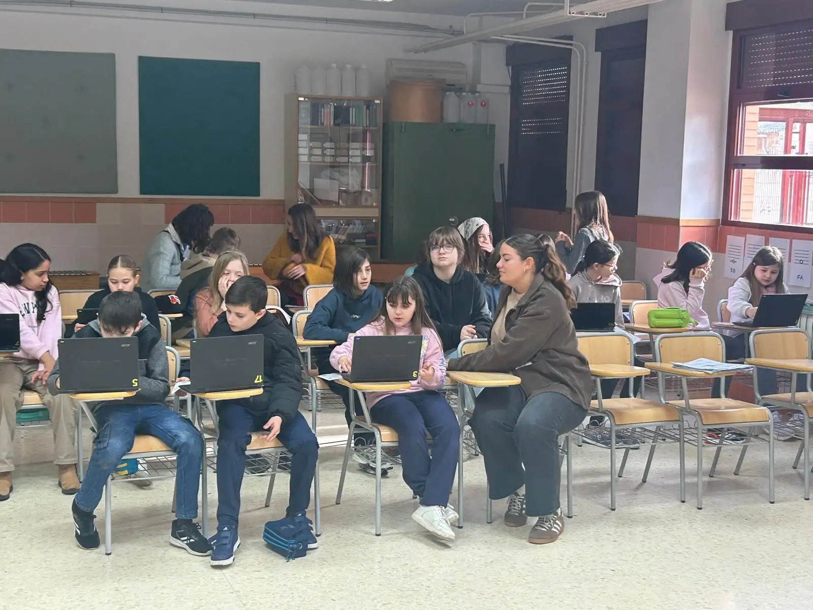 Hem estat a l’edifici de l’alumnat de 9 a 11 anys, on hem pogut observar com treballen amb autonomia, respecte i col·laboració, en un ambient acollidor i ple de materials Montessori.