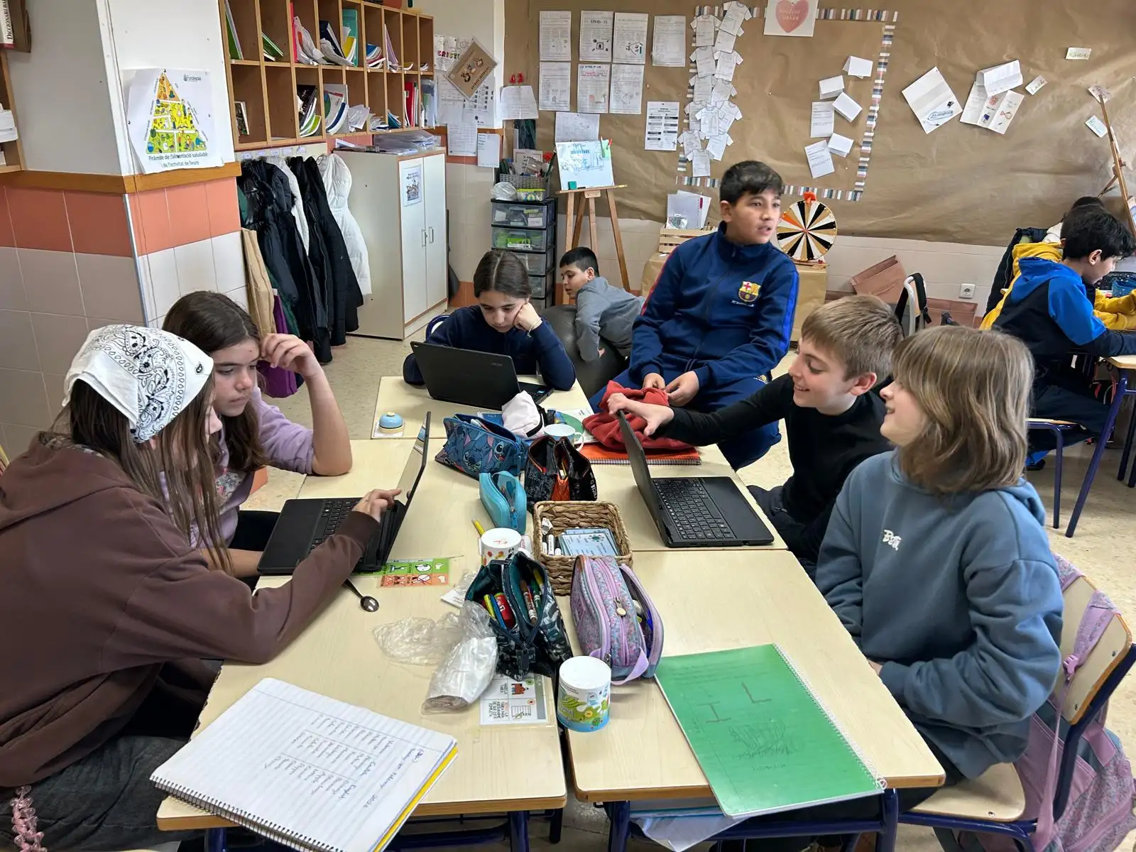 🏗️Hem observat com, amb l’ús divers dels espais a les aules, com la diferent agrupació de l’alumnat dins d’un mateix grup classe i l’optimització d’un espai arquitectònic dissenyat i pensat per al treball col·laboratiu, d’alumnat i professorat, així com el trencament de la concepció d’aula com un espai quadrat i tancat, pot portar a produccions i resultats òptims per part de l’alumnat.