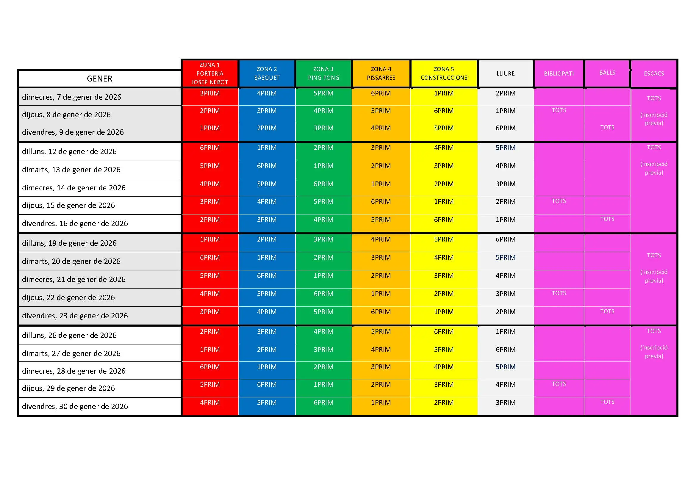 Els torns de les activitats per als patis dels cursos d’Ed.Primària del mes seran els següents:
