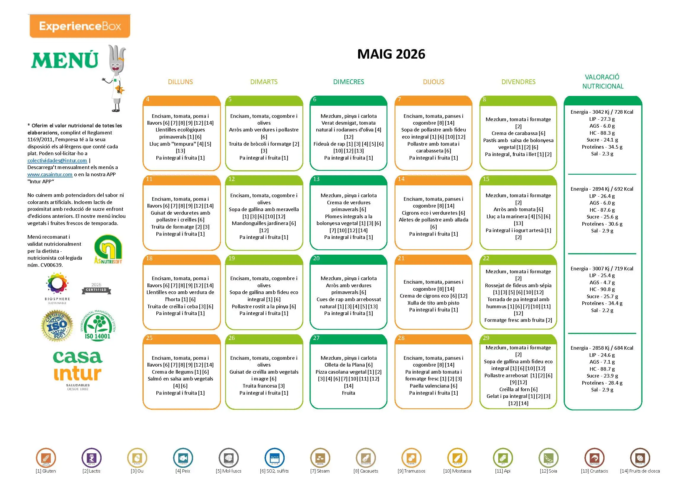 Comedor Escolar – Menú Mayo 2026 Los menús para el mes serán los siguientes. Clicad en las imágenes y descargadlos …