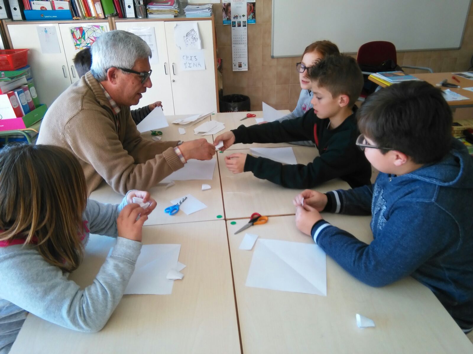 Los alumnos de 4º inician un taller de papiroflexia, impartido por Luis Bordera (antiguo conserje del centro). Más imágenes aquí