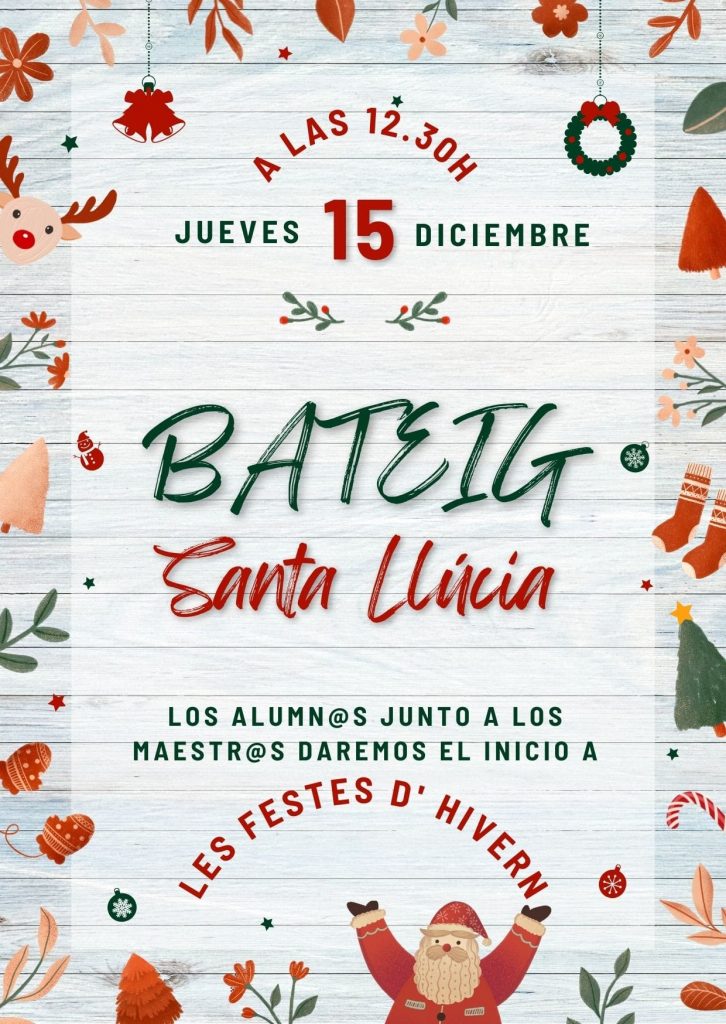 Los días 15 y 16 de diciembre se van a realizar en el centro las celebraciones relacionadas con las «Festes d’Hivern» con el «Bateig de Santa Llúcia» y la «Batalla dels Enfarinats». En las imágenes de bajo tienen la información.