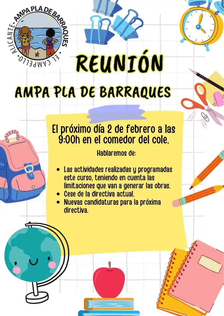 En la próxima reunión del AMPA abordaremos asuntos clave para el curso: la programación de actividades, el cese de la actual junta directiva y la apertura del proceso de presentación de nuevas candidaturas. Es una oportunidad importante para informarse, participar y contribuir activamente al futuro de la asociación. ¡Te animamos a asistir y formar parte de las decisiones!