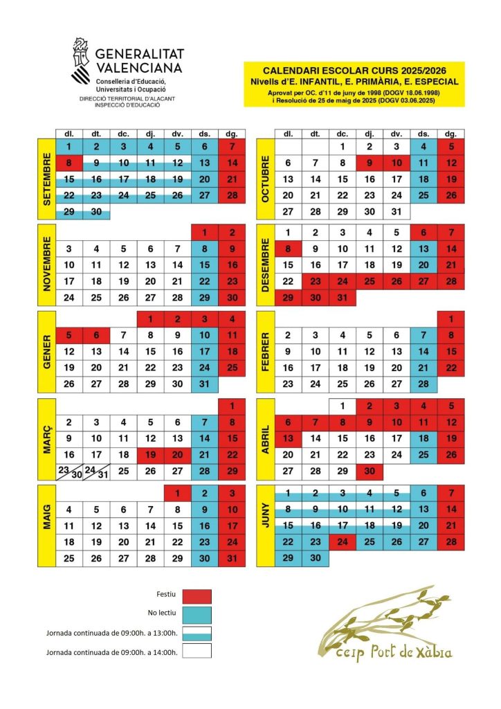 El curs 2025/2026 començarà el dimarts 9 de setembre de 2025.