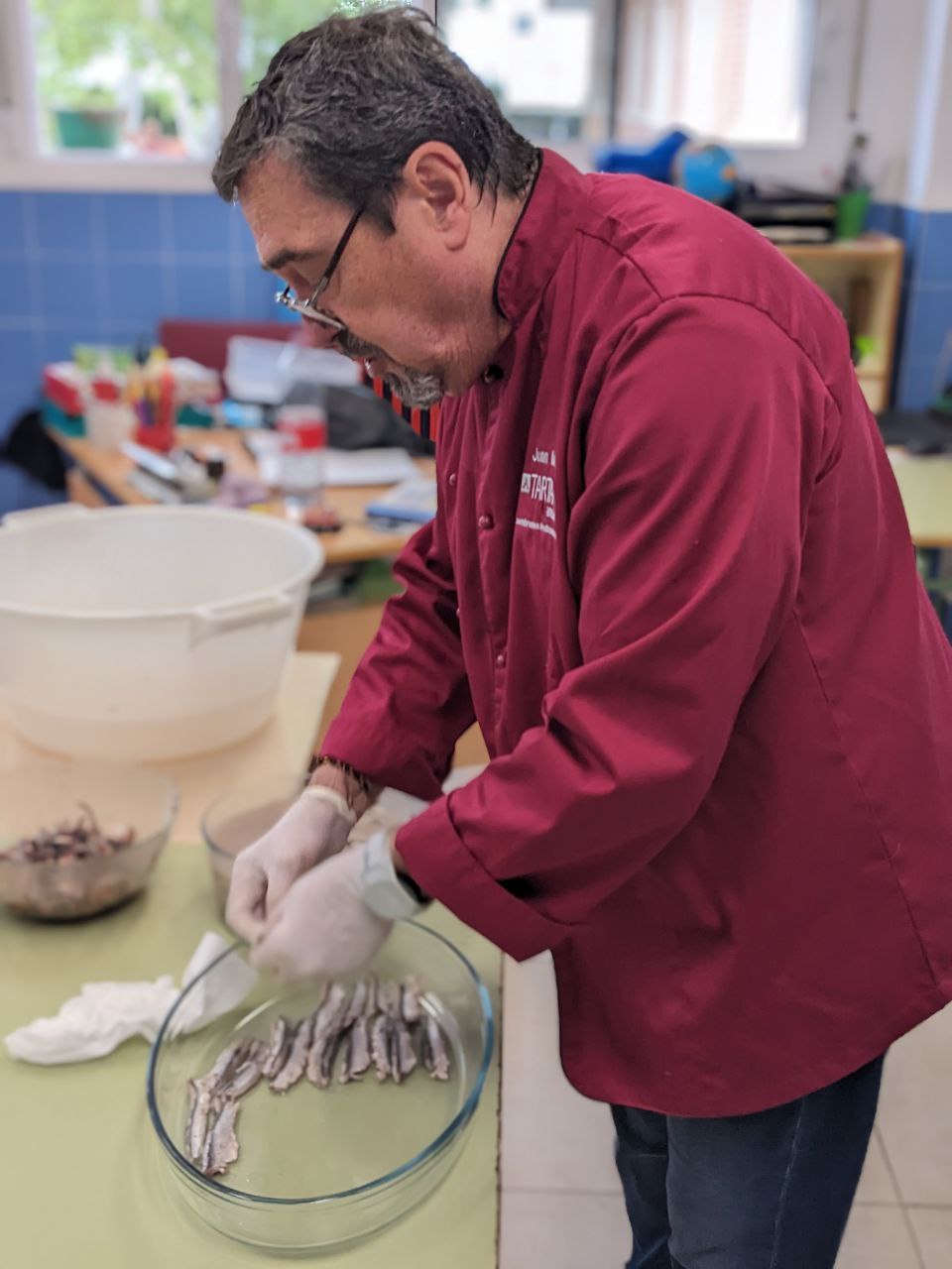 Dins de la setmana cultura, els cursos de 2r i 4t, han fet un taller de preparació d’aladroc en vinagre. Han après a desbudellar i preparar els aladrocs amb Juan Salvador Gayà.
