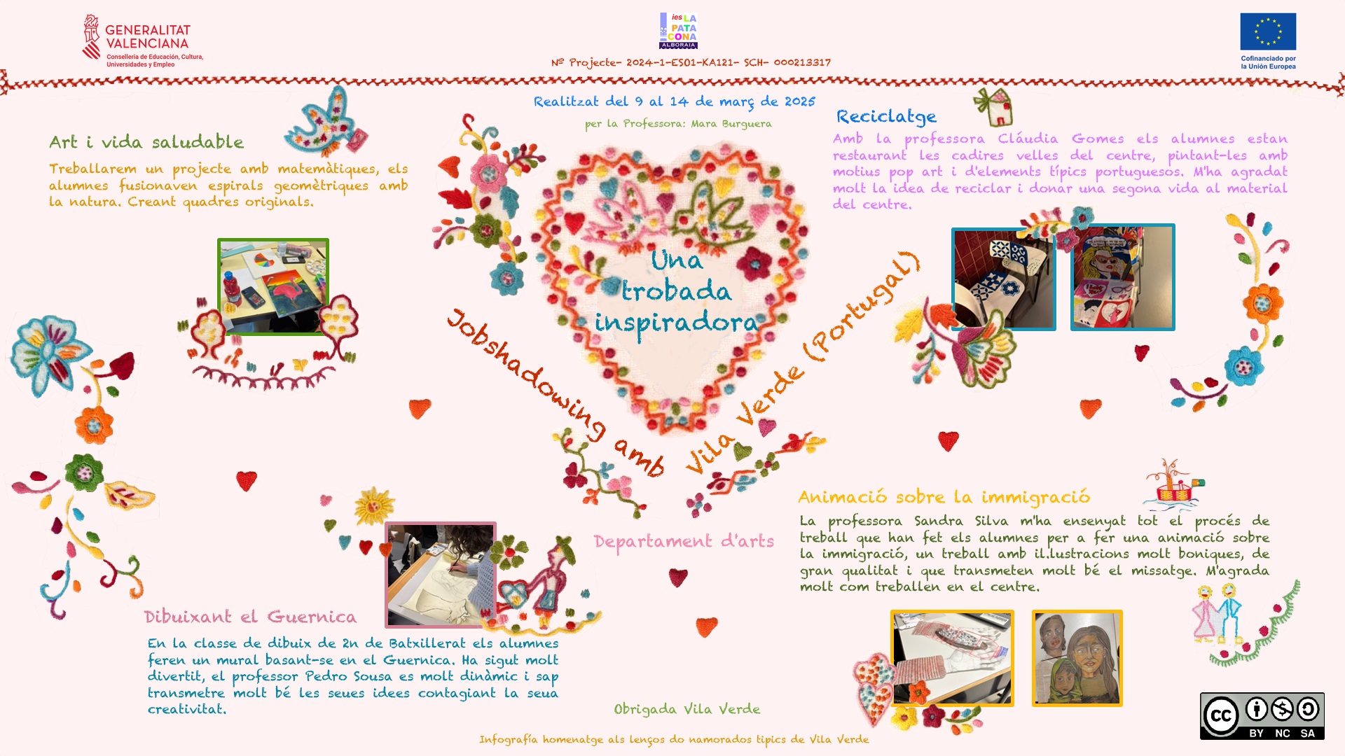 Programa Jobshadowing de l'IES La Patacona a l'Escola Secundària de Vila Verda (Portugal).Durant la visita, observem l'entorn creatiu de l'Escola i participem en les activitats diàries del Departament. Esta experiència ens va permetre compartir coneixements i enfocaments pedagògics en el camp de les arts. Este programa ha enfortit els llaços entre l'IES La Patacona i l'Escola Secundària de Vila Verda, demostrant el poder de la col·laboració i el compromís de l'educació.
