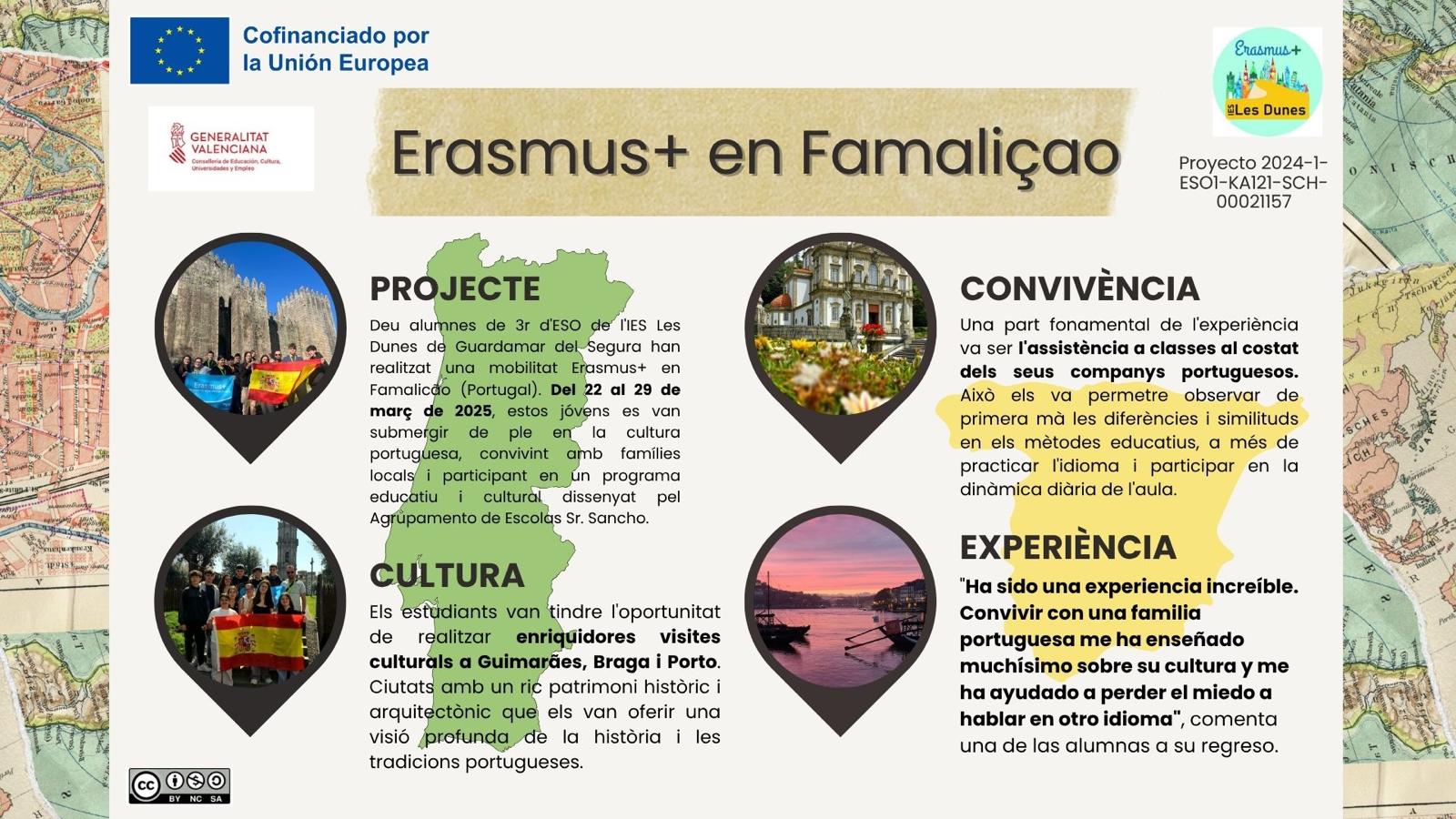 Estudiants de l'IES Els Dunes de Guardamar del Segura (Alacant) van participar en un programa de mobilitat en el Agrupamento de Escolas Sr. Sancho en Famalicão (Portugal). Els alumnes es van allotjar amb famílies portugueses, la qual cosa els va proporcionar una immersió cultural completa. El programa va combinar activitats acadèmiques i exploració cultural i oci, oferint una experiència internacional enriquidora i fomentant l'enteniment intercultural.
