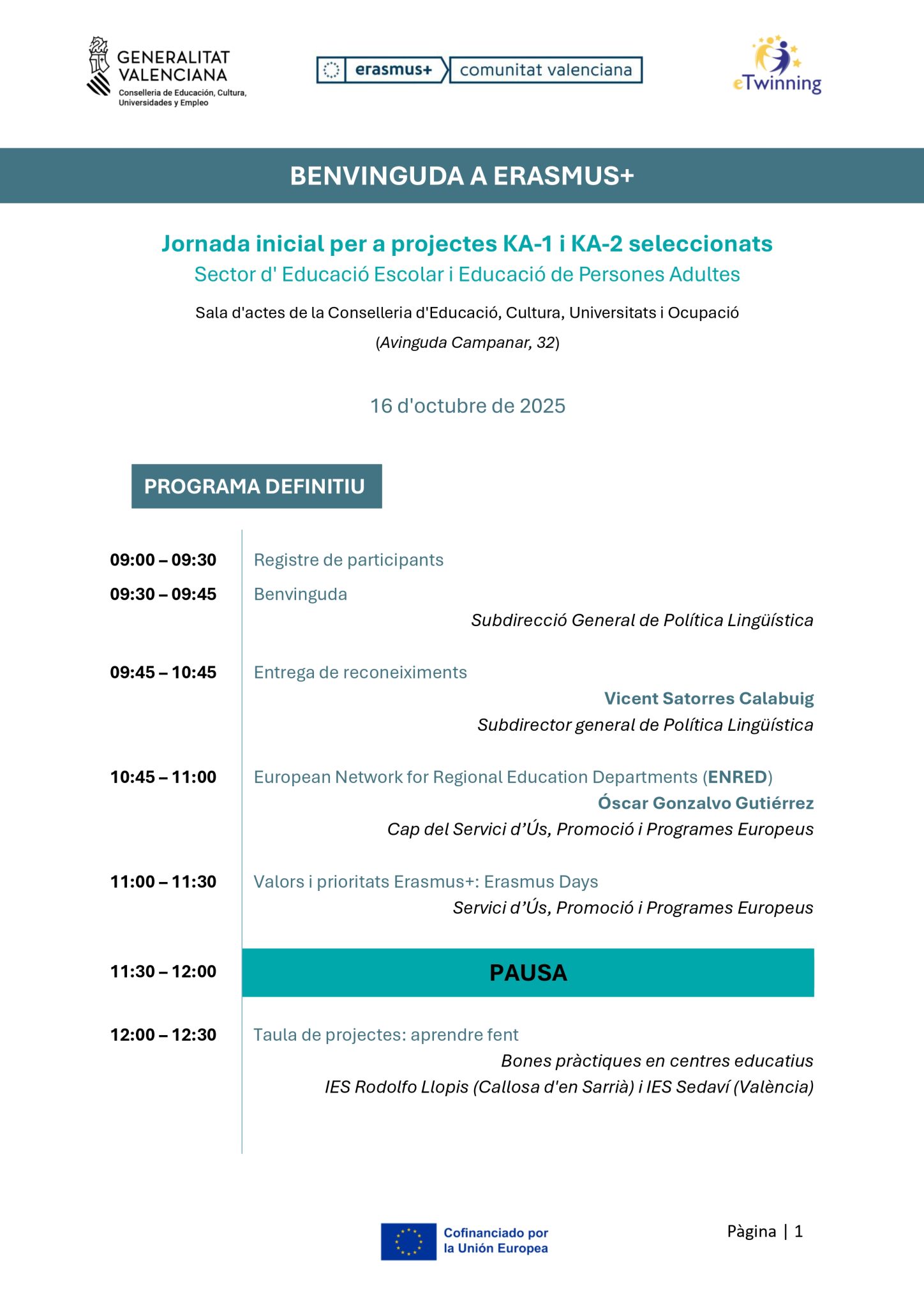 El dia 16 d’octubre celebrem la Jornada inicial per a projectes KA-1 seleccionats. Esta és una iniciativa de la Unitat de Programes Europeus de la Subdirecció General de Política Lingüística emmarcada dins de la campanya dels ERASMUS DAYS del SEPIE (Servici Espanyol per a la Internacionalització de l’Educació).
