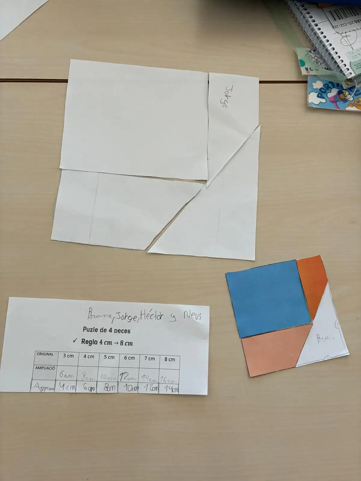 Formant el puzzle de Brousseau treballem la proporcionalitat. L’alumnat va fent medicions i comprovant que si les han fet bé.