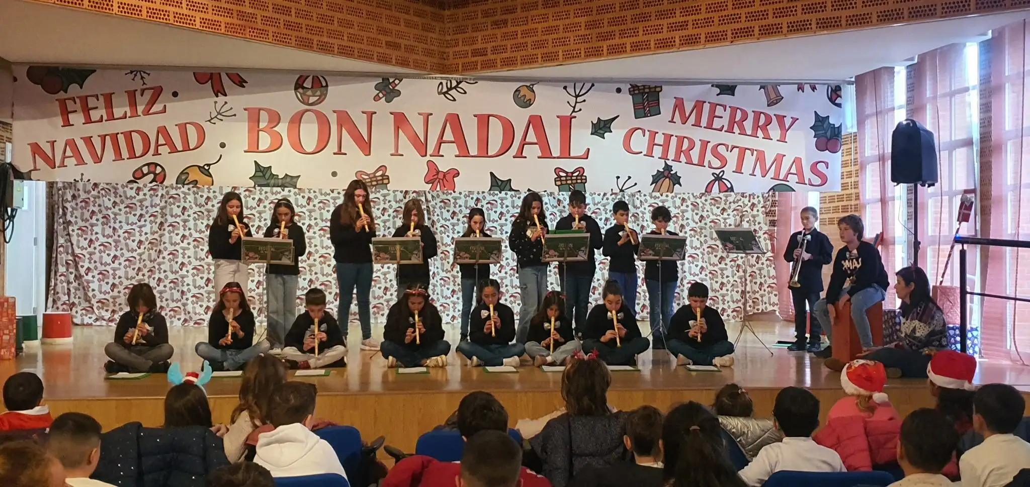 El Festival de Nadal va tindre lloc en la sala d’actes del Centre Social Juan Milla. L’alumnat havia preparat amb molta il·lusió les actuacions i tots vam poder gaudir de nadales, balls, instrumentacions i rimes nadalenques. A continuació apareixen els enllaços per a poder visualitzar els vídeos del festival i algunes fotos de les actuacions.