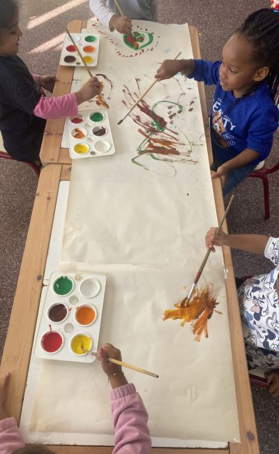 Creamos un mural con pinceles utilizando los colores del otoño.