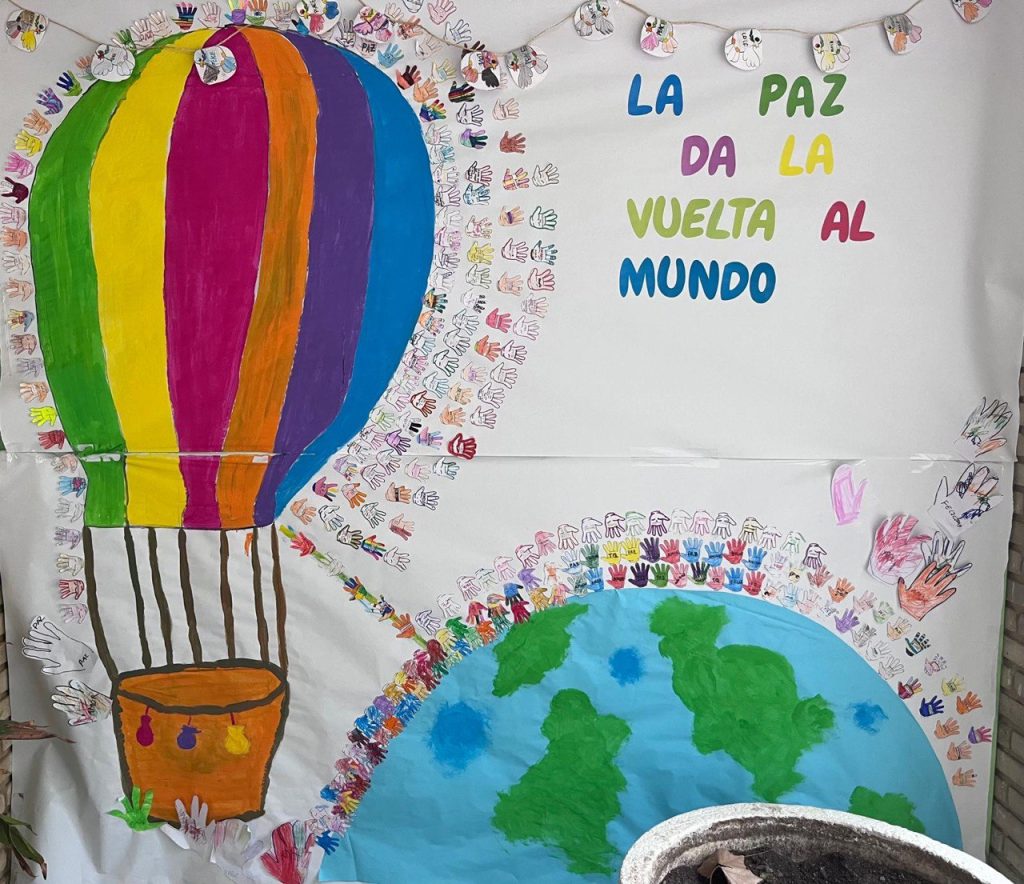 Con la ayuda de las maestras de inglés, aprendemos la canción Imagine de John Lenon y la cantamos en el patio. Además, dedicamos al mundo nuestros mejores deseos de paz con un bonito mural de nuestras manos.