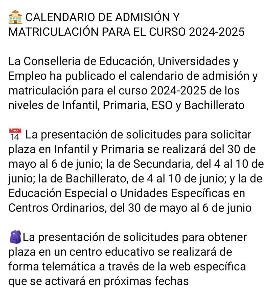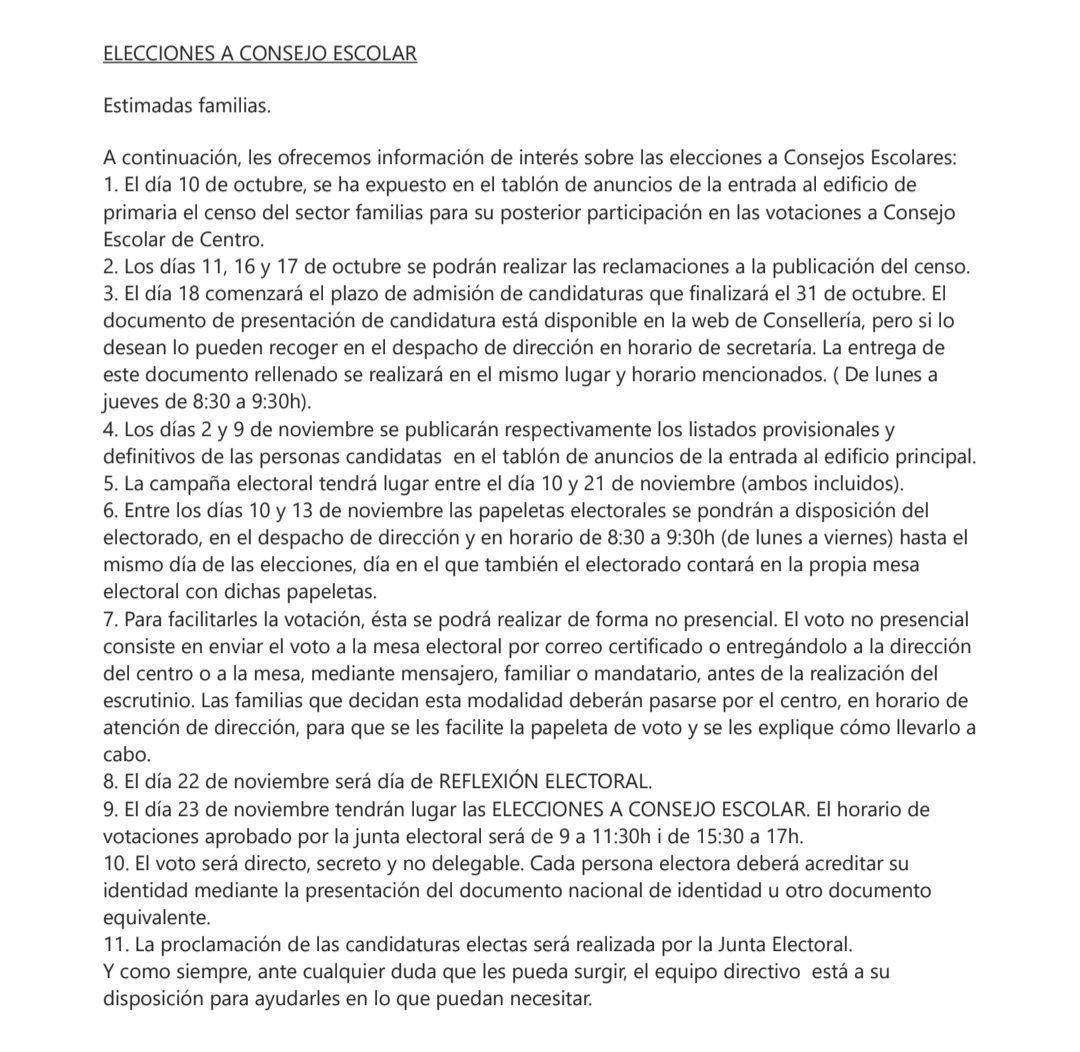 La Conselleria d’Educació ha convocat renovació dels Consells Escolars dels centres educatius.