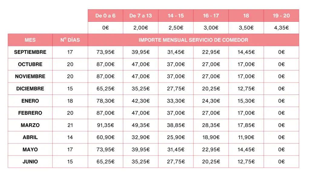 - Mínimo 3 días de comedor.