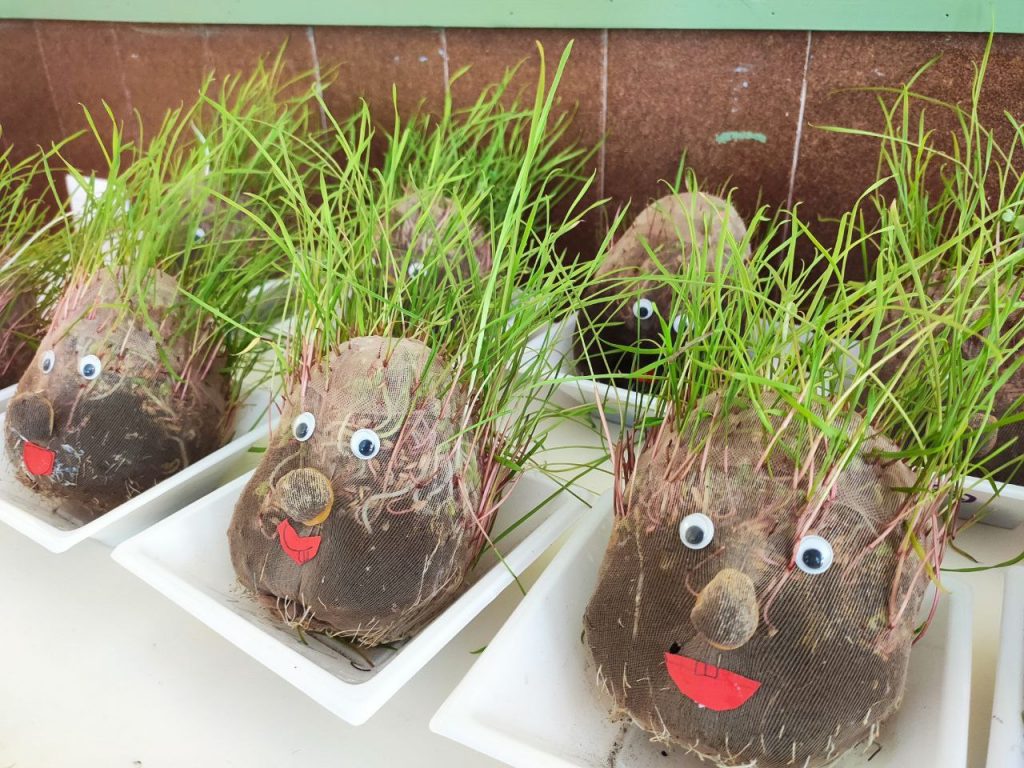 L’alumnat de 2n de Primària ha elaborat esta manualitat de “Crece Pelos” en les sessions d’Hort. Hem utilitzat alpiste i arena de jardineria i ho hem posat tot junt dintre d’un calcetí finet. Hem estat uns dies posant-li aigua i deixant que a les plantes els donara llum solar. Poc a poc hem anat observant com anaven creixent fulles i arrels. Finalment, hem posat la decoració dels ulls, boca i nas per a que fora més bonic.
