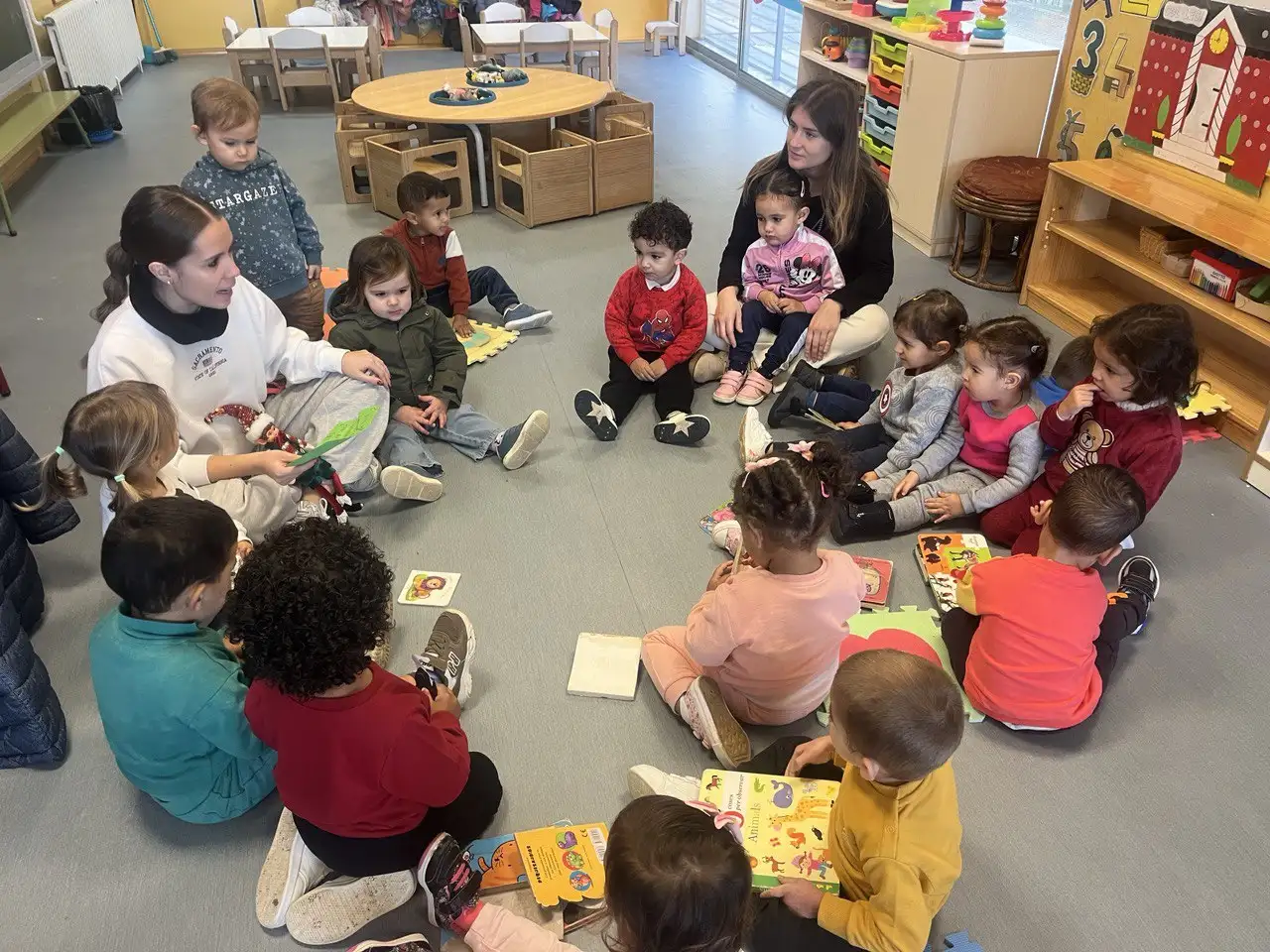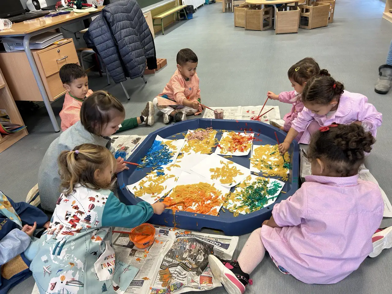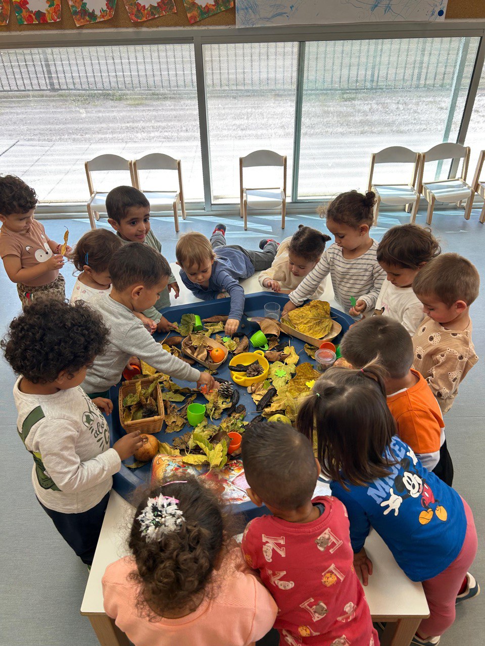 Els alummnes de 2 anys estan treballant la tardor, una estació plena de colors, olors i textures. A través de contes, cançons, experiències sensorials i activitats creatives, els xiquets i les xiquetes han descobert els canvis que es produeixen a la natura: com cauen les fulles dels arbres, els fruits típics d’aquesta època, com les castanyes, les magranes o els moniatos.