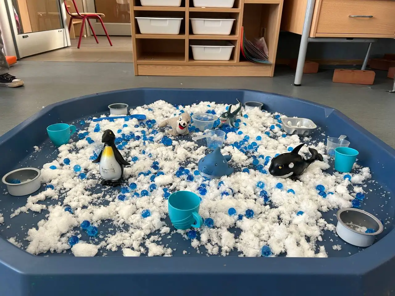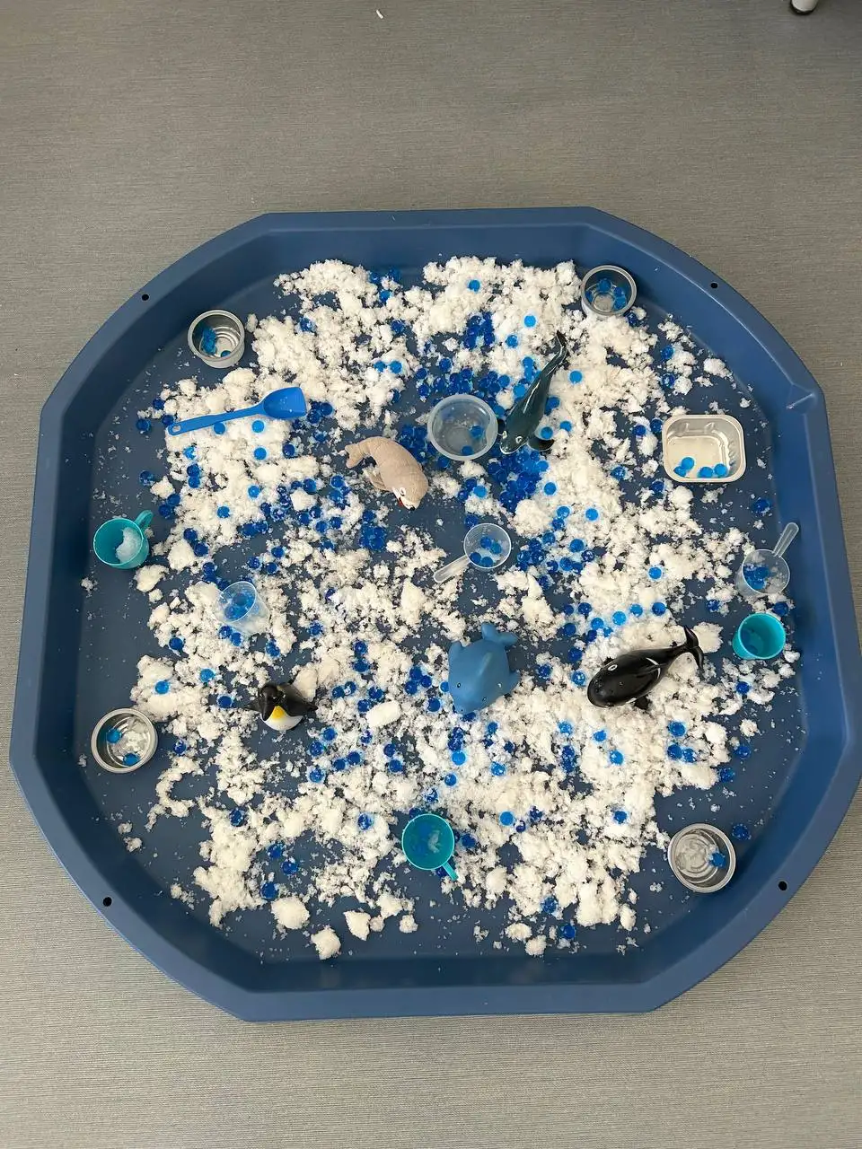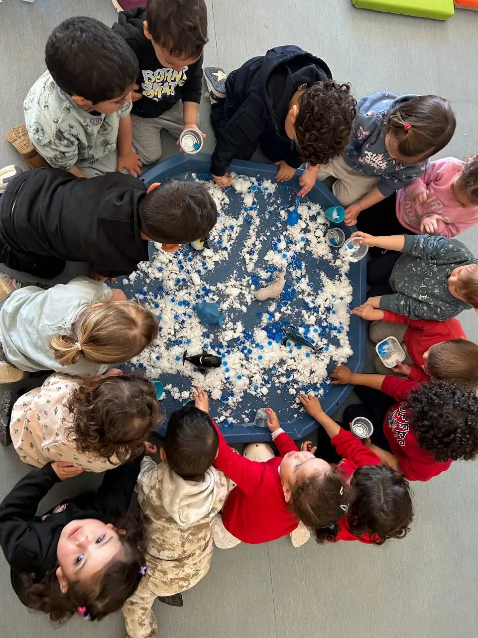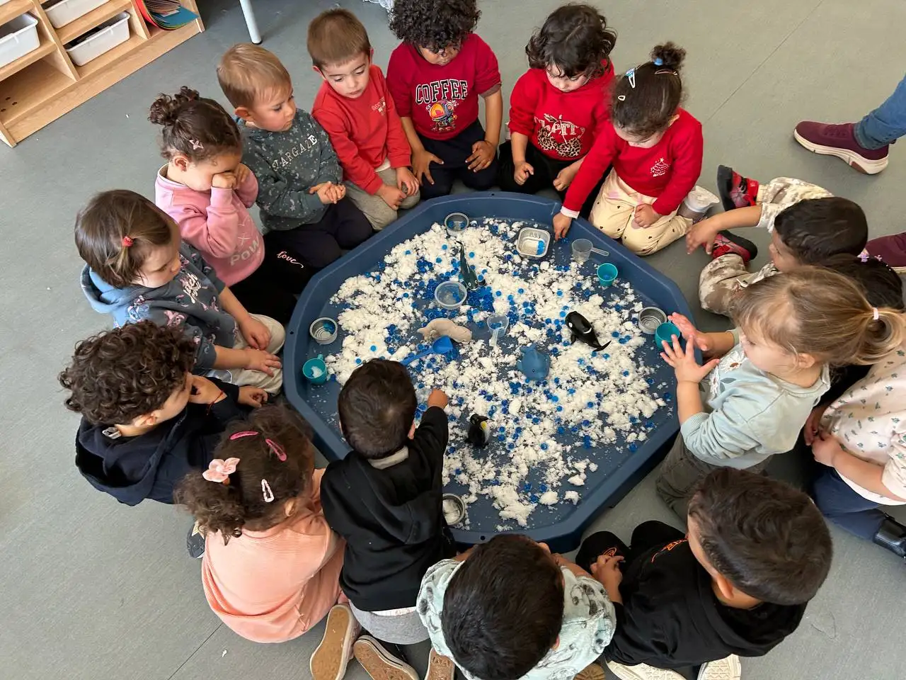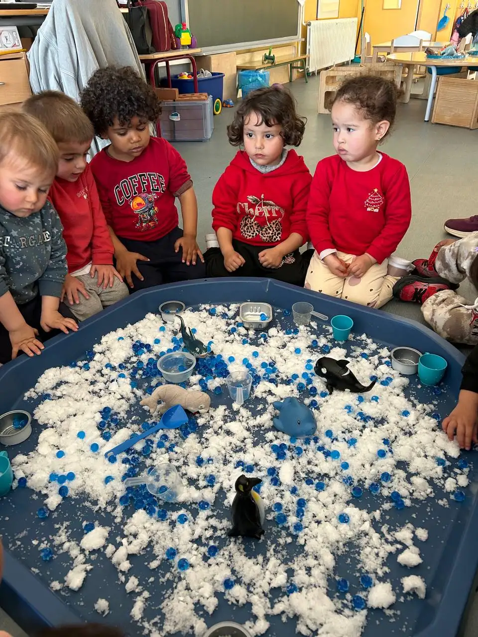 L’alumnat de 2 anys ha participat aquesta setmana en una activitat sensorial per a treballar l’hivern a l’aula. Mitjançant una safata d’experimentació amb materials que simulaven la neu i el gel, xiquets i xiquetes han manipulat, transvasat i explorat diferents textures, afavorint el desenvolupament sensorial i la motricitat fina.