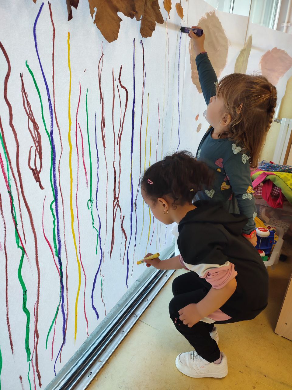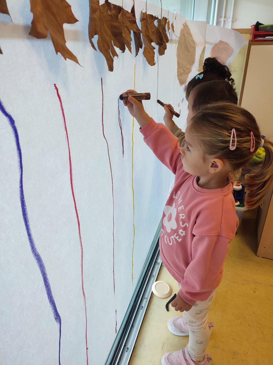 Observem com cauen les fulles dels arbres i dibuixem el caminet que fan de dalt de l’arbre fins caure a terra.