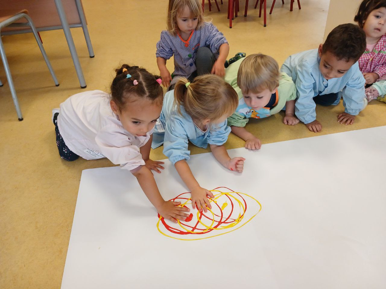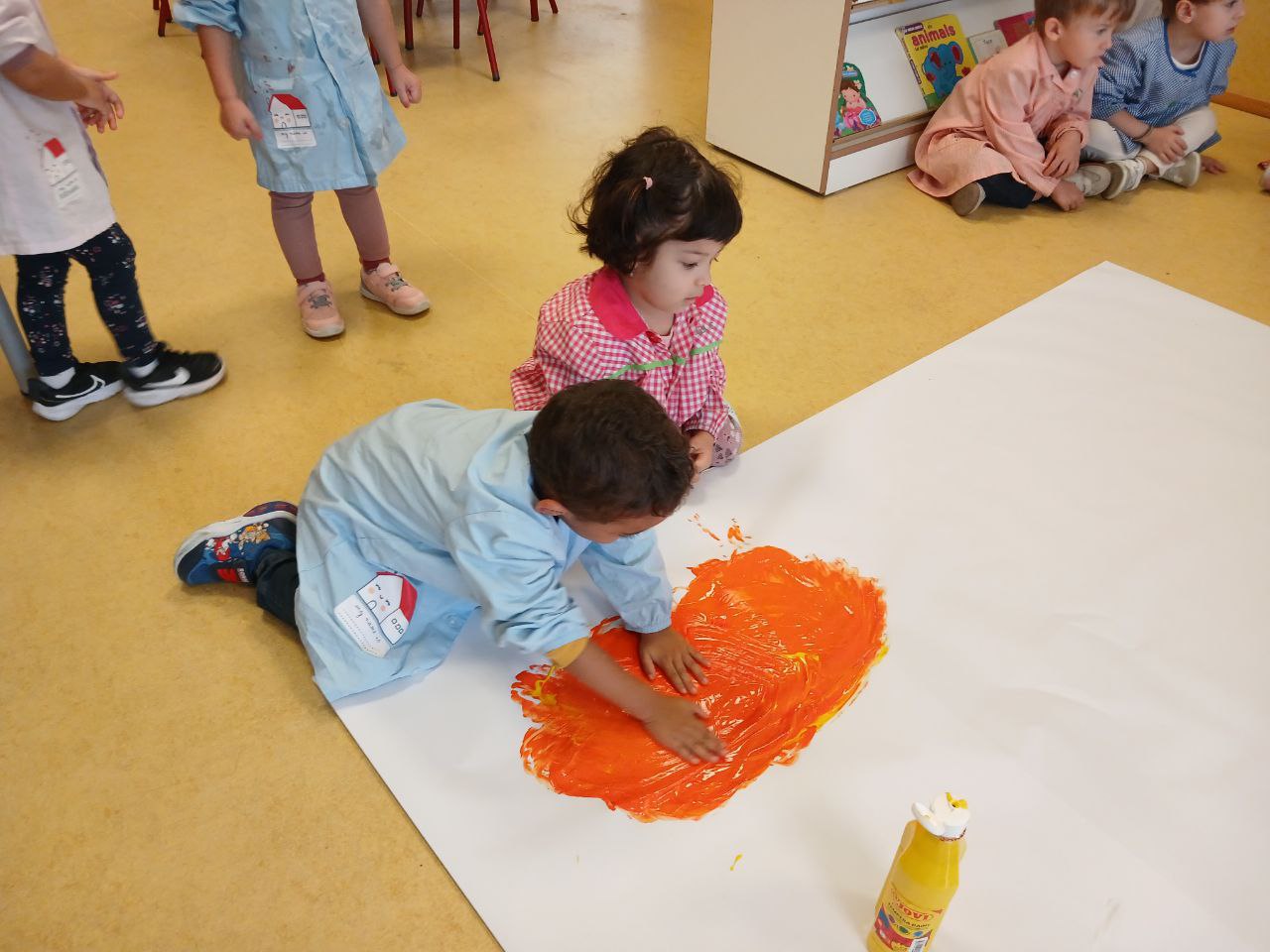 Els alumnes de 3 anys hem fet mescles dels colors primaris (roig, blau i groc) i ens han sortit el taronja, verd, marró, lila….