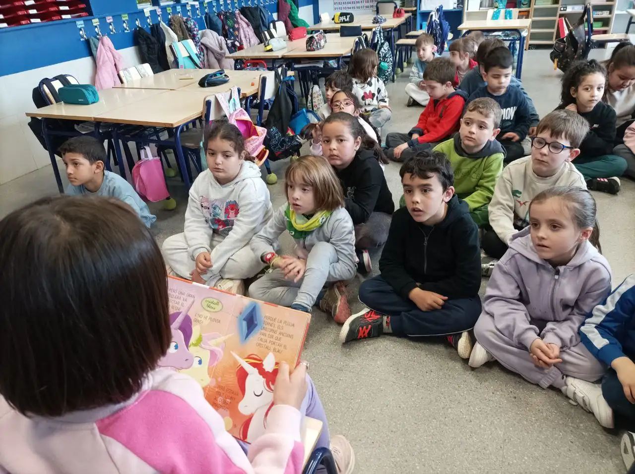 Els xiquets i les xiquetes de primer estem aprenent a llegir molt bé! Després de preparar les lectures a casa, ens agrada compartir els nostres contes amb els companys i companyes de la classe.