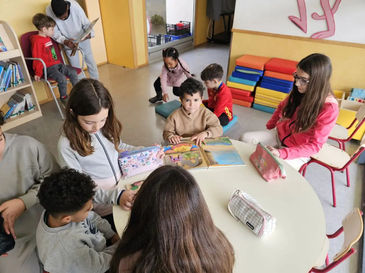 Aquesta setmana hem fet la primera trobada dels padrins lectors. Els alumnes de 5è B han apadrinat els seus fillols d’I5 B. Ha estat un moment molt bonic, en què els alumnes grans han pogut conéixer els més menuts de l’escola i començar a crear un vincle especial amb ells.
